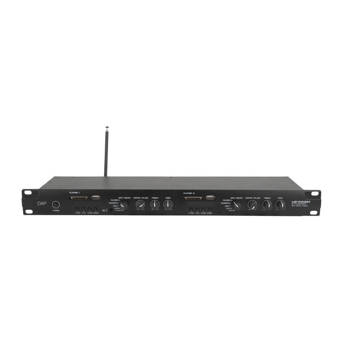 DAP – MP-220BT – Reproductor de medios con Bluetooth, Reproductor de medios doble 1U con radio FM, reproductor de tarjeta USB/SD, Bluetooth 4.2 e interfaz de micrófono de localización