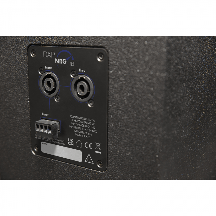 La gama DAP NRG se compone de altavoces ligeros de rango completo con woofers de 8″ a 15″ y subwoofers con controladores de 12″ a 18″, disponibles en versiones pasivas y activas. La gama está diseñada para aplicaciones de DJ móviles o instalaciones permanentes en recintos de tamaño pequeño o mediano. Todos los altavoces de la gama NRG utilizan cajas de madera contrachapada fuertes y ligeras, montajes de mástil de doble ángulo y puntos de anclaje M10 en los altavoces de rango completo, adaptadores M20 en los subwoofers, un revestimiento de poliurea resistente al desgaste de nivel profesional y conectores robustos para ofrecer una calidad de sonido excelente a un precio muy competitivo.