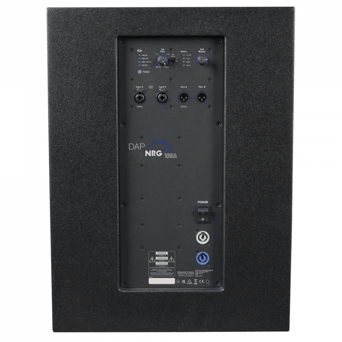 DAP NRG-15SA Subwoofer réflex de bajos activo de 15″, RMS de 500 W, SPL máx. de 121 dB a 1 m Rango de frecuencia de 50 a 170 Hz DSP interno con cuatro modos