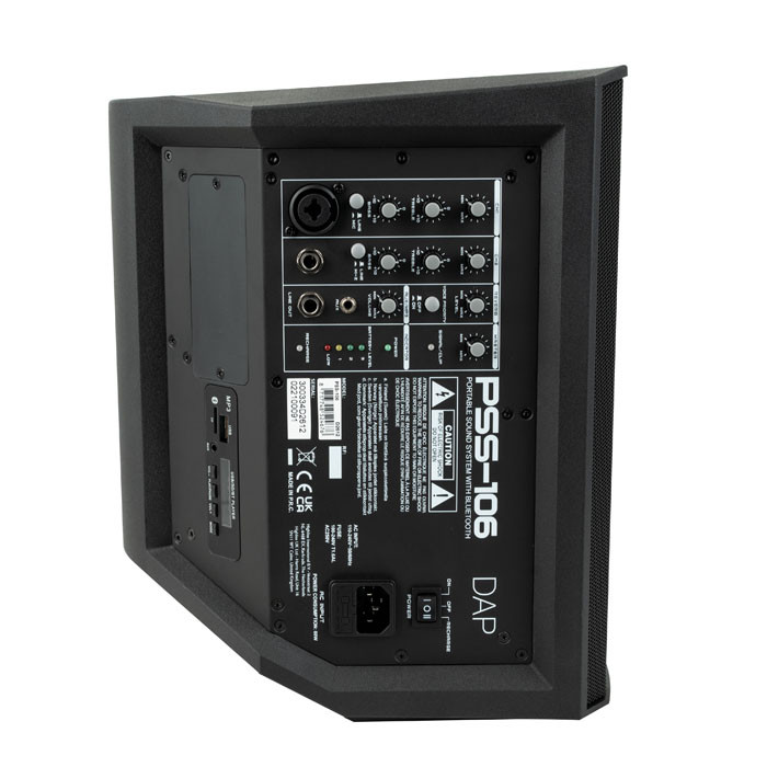 DAP – PSS-106 – Altavoz a batería Altavoz a batería de 6,5″, sin micrófono, Altavoz a batería de 100 vatios con función Bluetooth y MP3 Ligero amplificador de clase D Se puede utilizar como monitor de suelo, tilt back o sistema de megafonía 5 horas de carga y 5 horas de duración de la batería a máxima potencia
