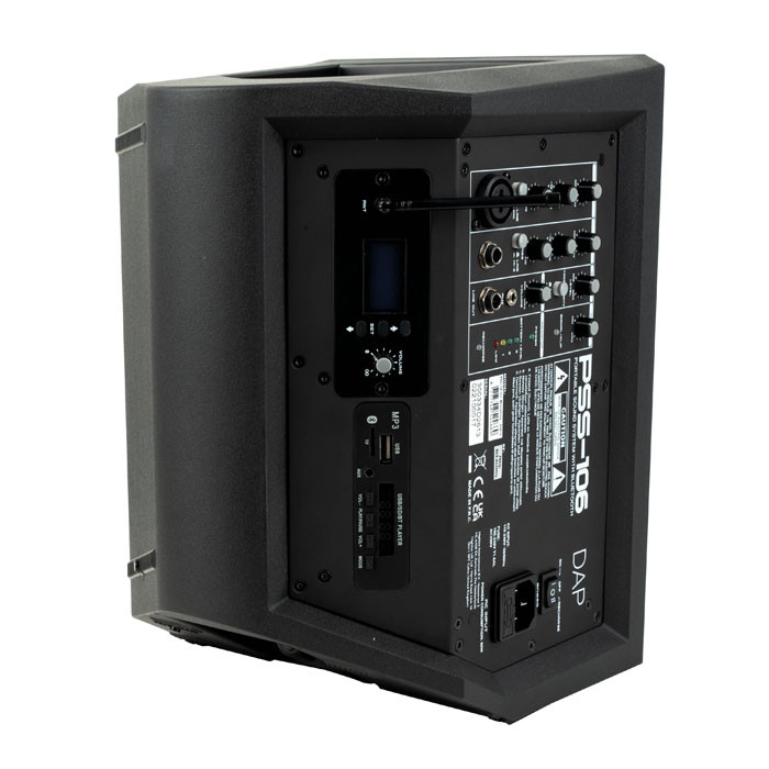 DAP – PSS-106 – Altavoz a batería con receptor inalámbrico Altavoz a batería de 6,5″, incluye micrófono de mano inalámbrico, Altavoz a batería de 100 vatios con función Bluetooth y MP3, Pico de Potencia de Salida del Amplificador 160 W , Puede usarse como monitor de suelo, tilt back o sistema de megafonía 5 horas de carga y 5 horas de duración de la batería a máxima potencia