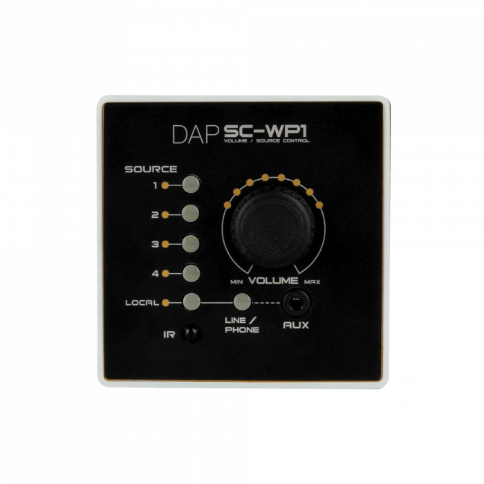 Cód. D1542 DAP SC-WP1 – Panel de pared remoto de audio para el SC-5.2 Source Control – color blanco DESCRIPCIÓN Premium Control remoto para el SC-5.2 Source Control Entrada de audio auxiliar para fuentes de línea/telefónicas (mono adicional) Se conecta mediante cable CAT5 blindado estándar o superior Se ajusta en una caja de pared cuadrada estándar (ABB Hafobox 190, Gira 2896 00, etc.) El DAP SC-WP1 es un panel de pared que sirve de control remoto para el DAP SC-5.2 Source Control. El codificador rotatorio controla el volumen y los interruptores táctiles permiten seleccionar la fuente de salida. El SC-WP1…