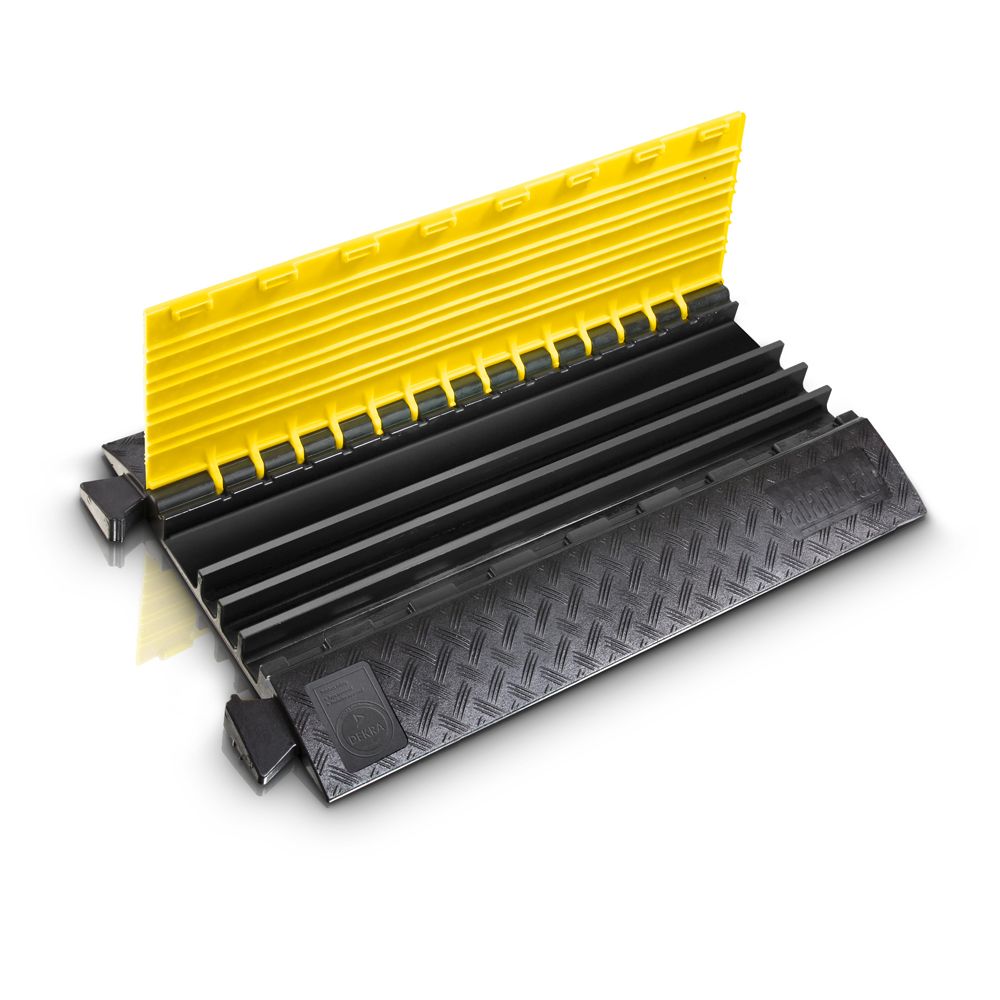 4 Canales Medianos – 1 Más Ancho para Manguera contra Incendios Con un canal más ancho de 80 x 36 mm y tres canales de 34 x 36 mm, el pasacables Defender® MIDI 4C es la opción perfecta cuando es necesario tender por separado una manguera plana junto a cables de sonido, iluminación y eléctricos. Con piezas de unión integradas, baja altura y una capacidad de carga de 5 toneladas para una superficie de 20 x 20 cm, los pasacables Defender® MIDI 4C son adecuados para tráfico rodado de vehículos pesados, obras de construcción, almacenes, carnavales, ferias, exposiciones, stands, centros comerciales y eventos musicales.