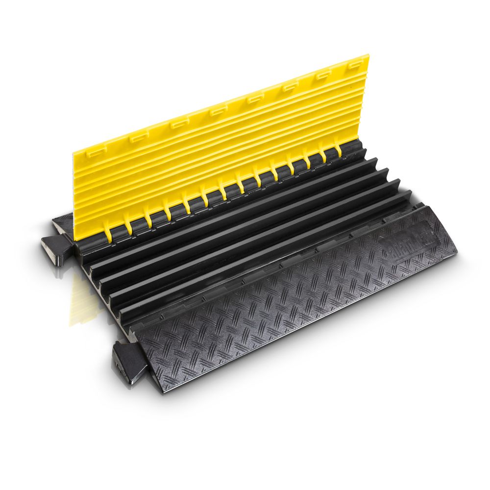 5 Canales de Tamaño Medio – La Solución para Casi Todo El pasacables Defender® MIDI ha sido diseñado para ofrecer la máxima versatilidad de tendido de cables y garantizar un paso seguro. De menor altura, ofrece una capacidad de carga de 5 toneladas para una superficie de 20 x 20 cm, e integra piezas de unión y asas. El módulo recto, la curva de 45° y los finales de rampa se acoplan fácilmente para formar un protector de cable continuo, y los cinco canales de 34 x 36 mm permiten alojar individualmente cables de sonido, iluminación y eléctricos. Los pasacables Defender® MIDI son ideales para diversas aplicaciones, como tráfico rodado de vehículos pesados, obras de construcción, almacenes, carnavales, ferias, exposiciones, stands, centros comerciales y eventos musicales y de radio y TV.