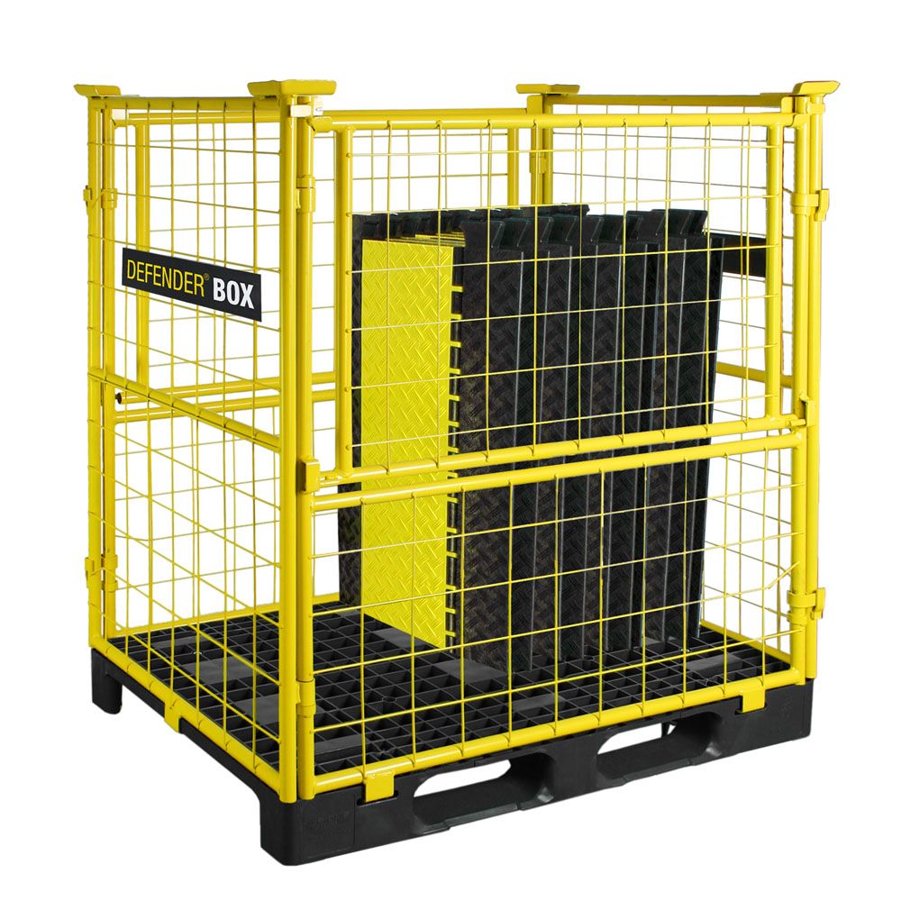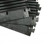 2 canales para cables extragrandes – El gigante de gran resistencia Defender® Ultra L 2 – Los pasacables para cargas pesadas están diseñados para las aplicaciones más exigentes y cuentan con dos canales extragrandes de 108 x 110 mm, cuatro canales más de 25 mm de diámetro y elementos de acoplamiento integrados para conectar fácilmente varios elementos. La capacidad de carga es de 5 toneladas para una superficie de 20 x 20 cm. Por tanto, los pasacables Ultra L 2 son la solución ideal para obras de construcción, almacenes, ferias profesionales, carnavales y eventos musicales y otras aplicaciones con tráfico pesado. Están equipados con cuatro orificios para fijarlos al suelo.