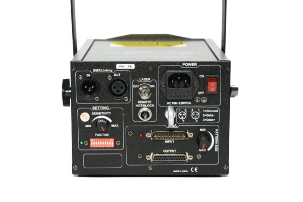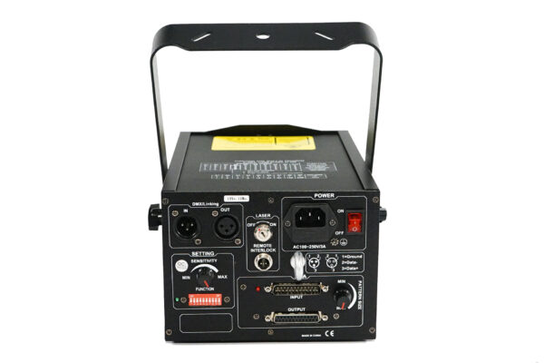 FOS 2000RGB – Láser RGB de alta calidad con 25 escáneres KPPS, Láser: R: 300mW + G: 300mW + B: 900mW, Longitud de onda: R: 635nm + G: 532nm + B: 450nm, Sonido activo, AUTO, ILDA PC, DMX512 (12 canales)