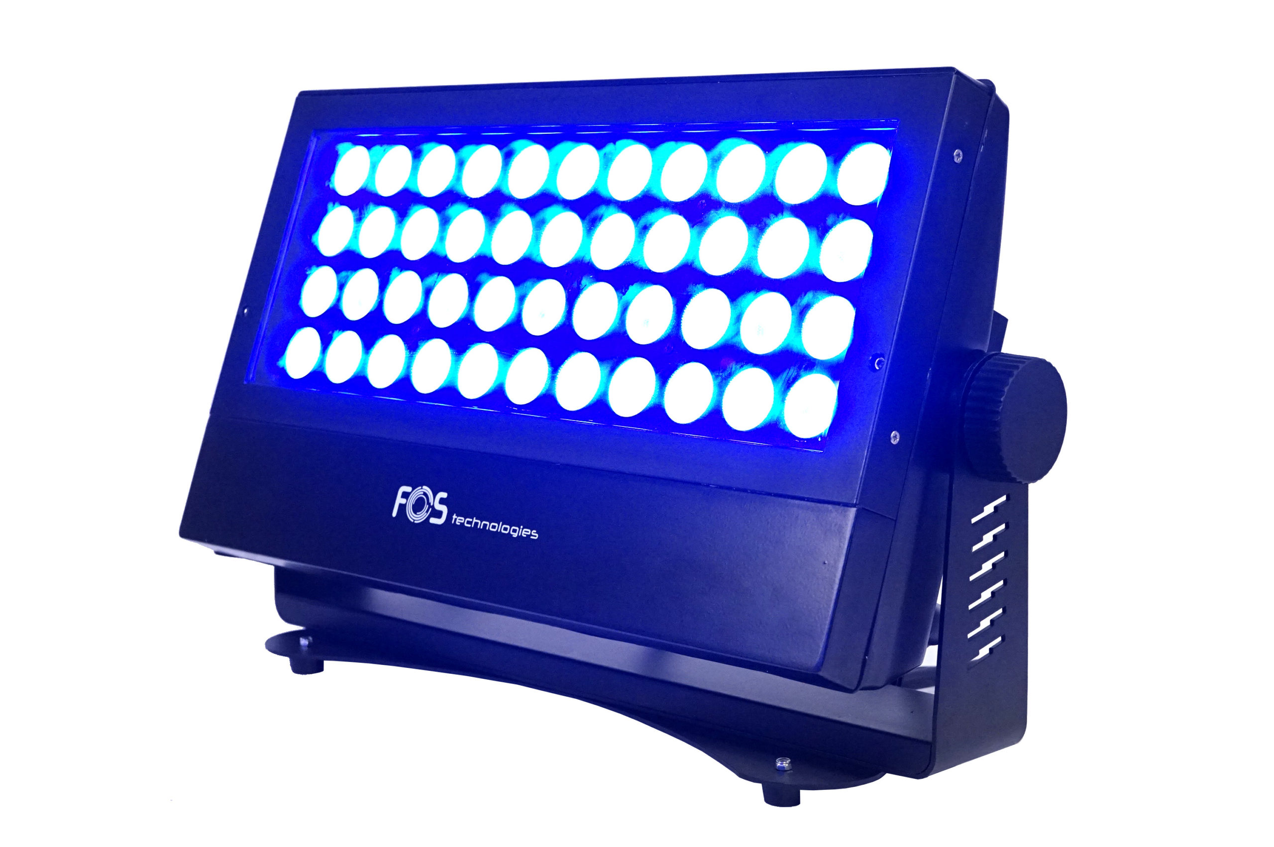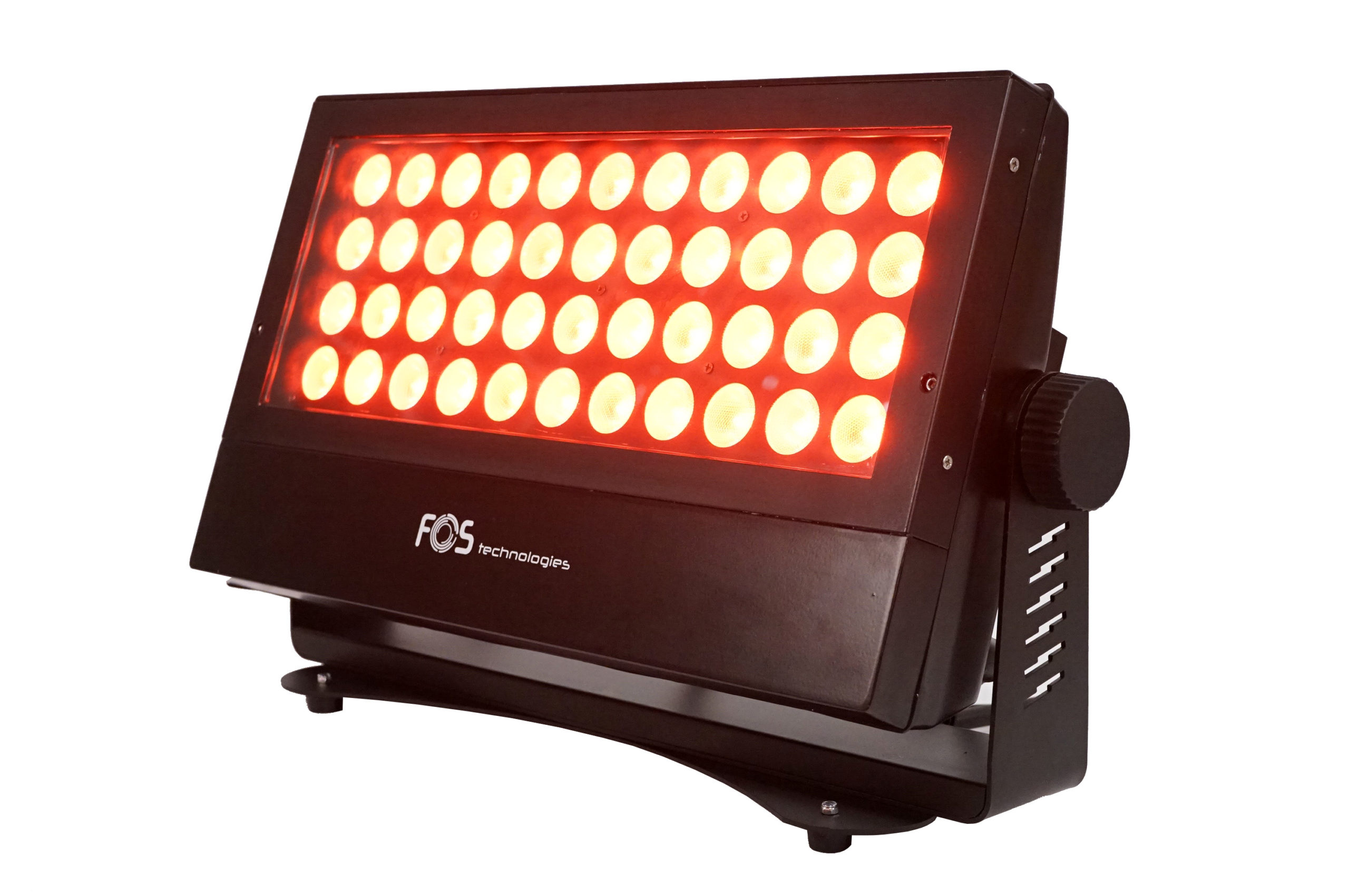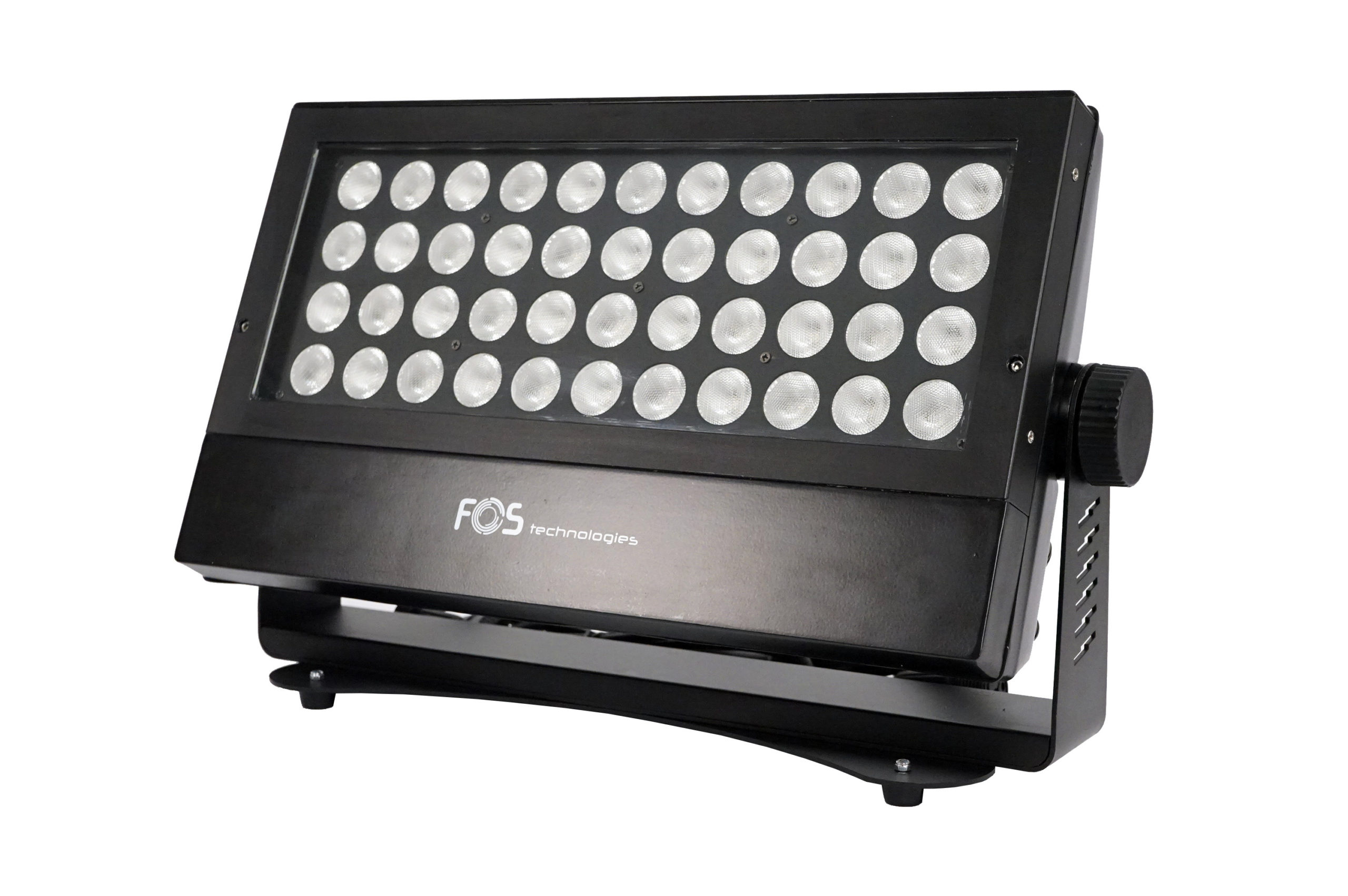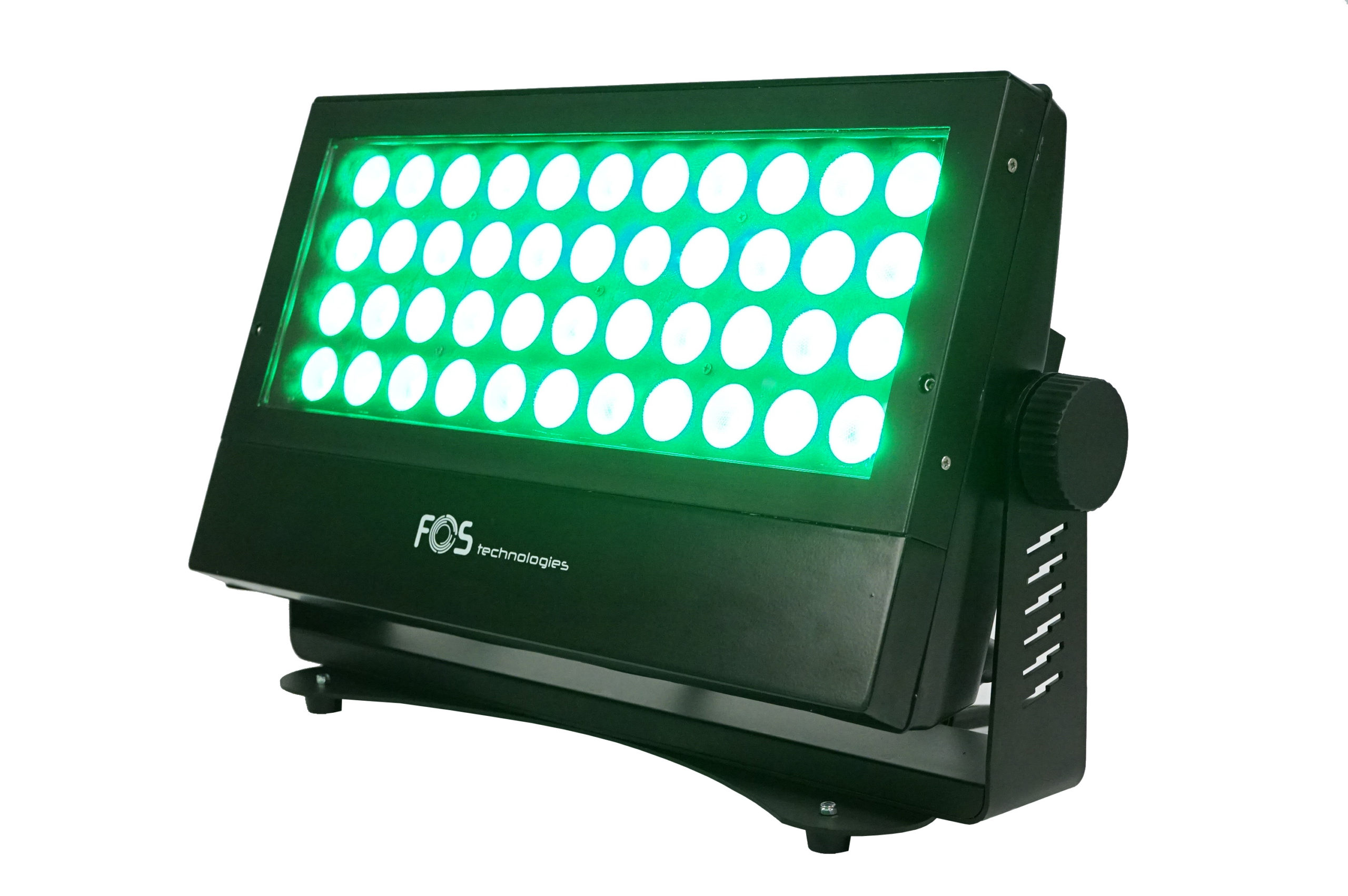 FOS F-5 – Increíble proyector washer IP 65 44 x LED RGBW 4in1 10W, 12.000 lm, lente de 35 °, Pan / Tilt: 0 ° / 120 °, canales DMX 1, 3, 4, 5, 10, 14 y 15 seleccionables, Aluminio fundido a presión, Soporte de suelo, colgante, 9 Kg.
