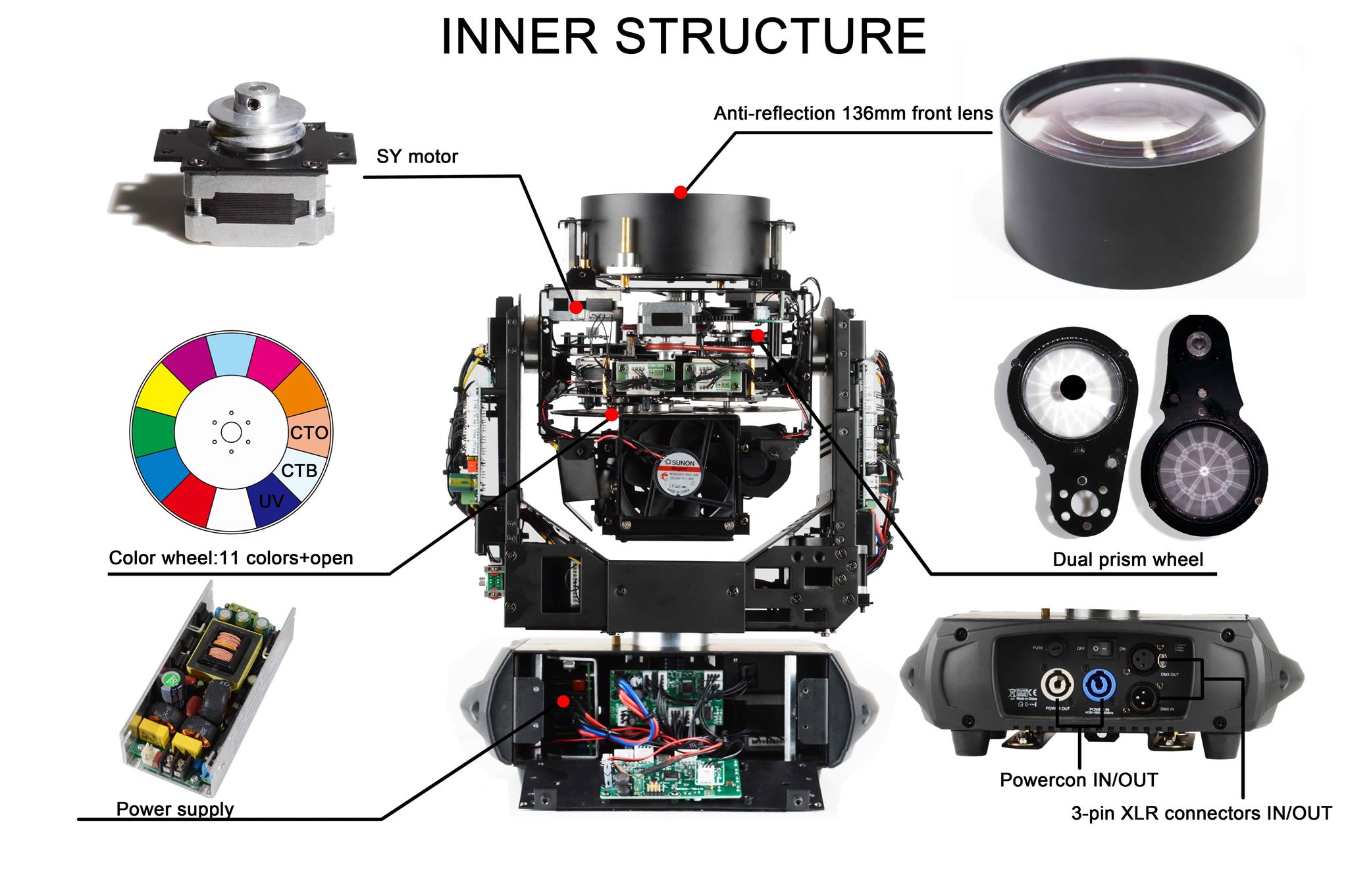 16 gobos estáticos y abiertos, con reductores de haz incluidos