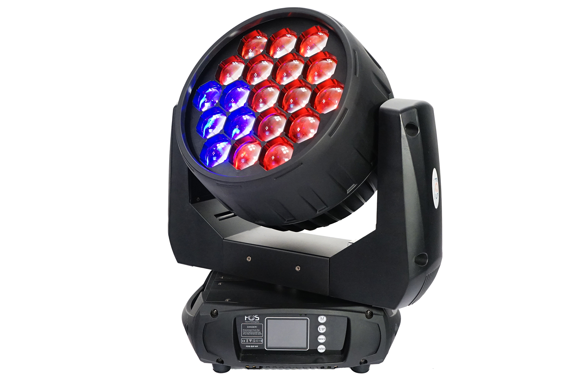 FOS WASH Q19 HP – Wash / Beam moving head , 19 RGBW 30w 4in1 LEDs zoom 6-60°, 4 sections pixel control, Preset color macros RGBW mixing with or without DMX controller , TFT display.