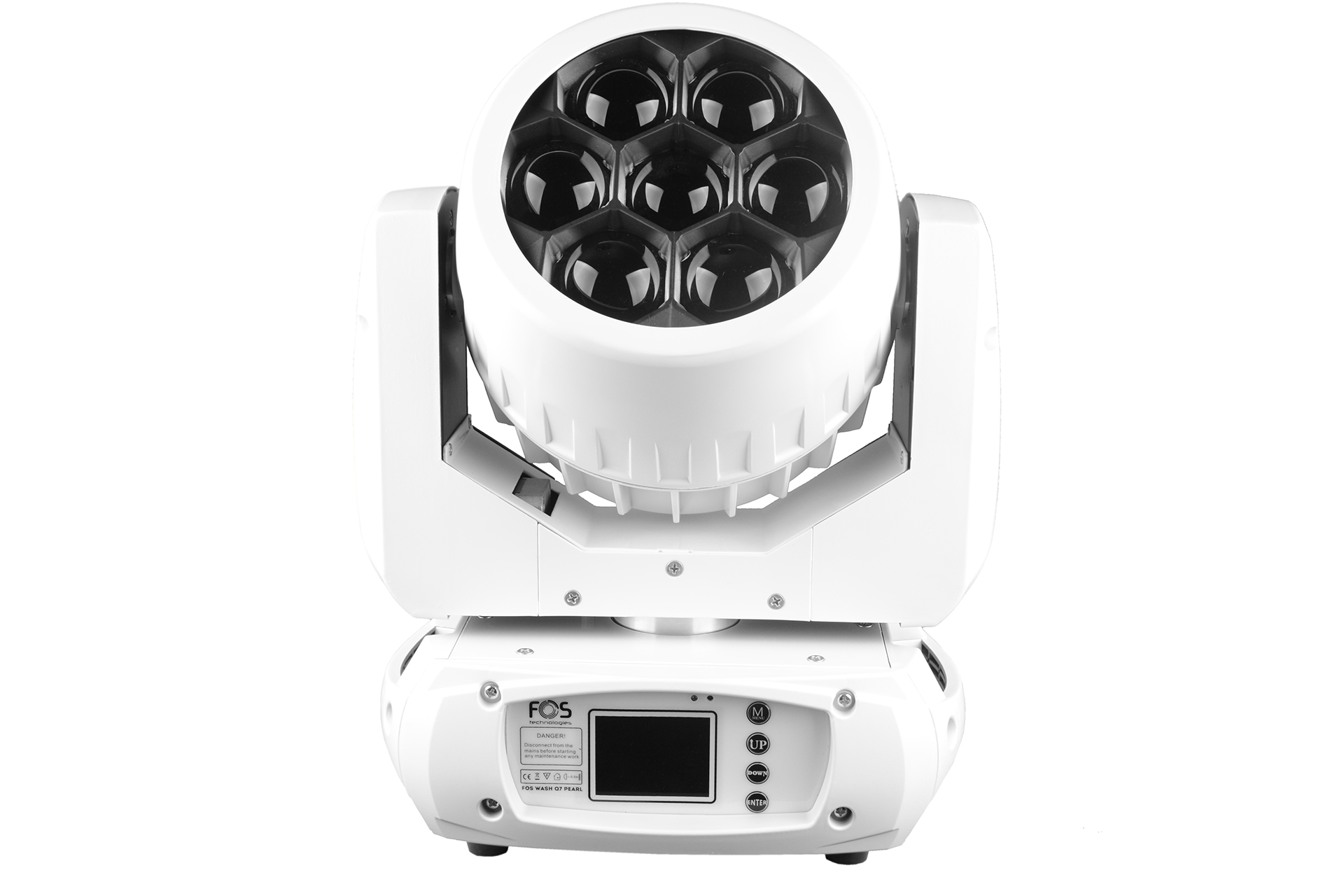 FOS WASH Q7 PEARL – Carcasa blanca, cabezal móvil Wash / Beam, zoom 6-60 °, leds RGBW 4 en 1 de .7x15w, control de píxeles, CTO, CTB, temperatura de color lineal 2700-8000 K preestablecida, 14/20/44/50 canales DMX USITT DMX-512.