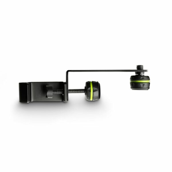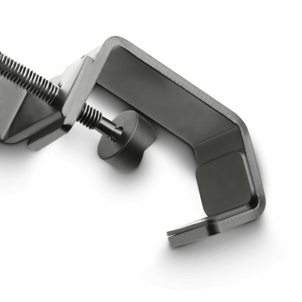 El Gravity MAMH 01 es una abrazadera de micrófono de acero texturizado negro para la sujeción sobre un soporte o atril de partituras con un tubo de diámetro máximo de 30 mm. Dispone de un antideslizante tornillo con rosca de 3/8″ para fijar la pinza de micrófono (no suministrada).