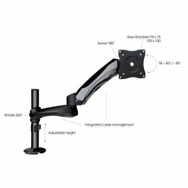 El SA 6131 B es un elegante brazo jirafa para pantallas fabricado en acero y aluminio de fundición y provisto de un canal de guiado de cables para conseguir una instalación limpia y ordenada. Se puede orientar en muchas posiciones y su práctico contrapeso permite ajustar la altura fácilmente. El brazo jirafa se suministra con una pinza para mesa y un pieza de protección para que el montaje sea más seguro.