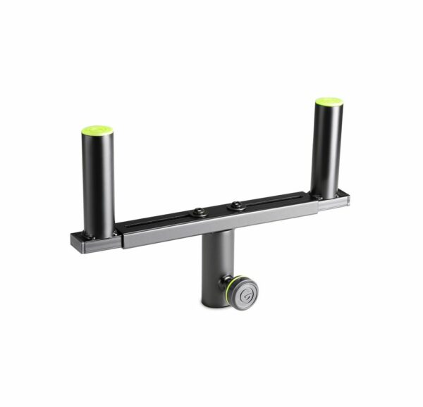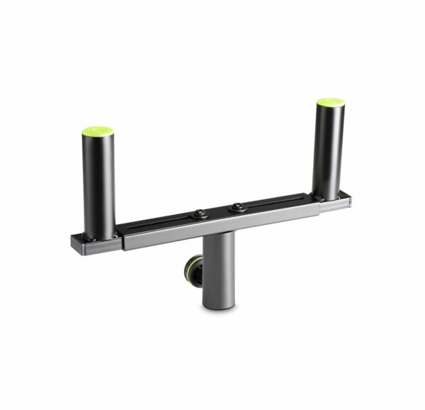 Cód. GSAT36B Gravity SAT36B – T-Bar Ajustable para montar dos altavoces en un solo soporte. Ajustable T-Bar para altavoces  Standsy El Gravity T-Bar facilita el montaje de dos altavoces en un solo soporte. Está hecho de acero de alta resistencia con un acabado de pintura en polvo negro y se adhiere firmemente a todos los palos 35 mm. El ancho es totalmente ajustable de 31 a 49 cm.