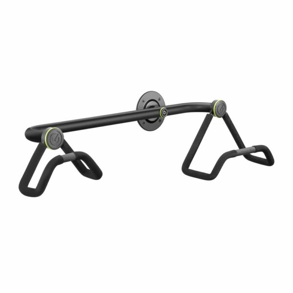 Este soporte de pared para guitarras tiene un auténtico impacto visual ya que permite colgarlas horizontalmente. Gracias a la construcción plana y antideslizante es posible adaptar el ángulo de inclinación rápida y fácilmente, y las monturas con acolchado blando y ajuste automático ofrecen un soporte óptimo para el mástil y el cuerpo de la guitarra.