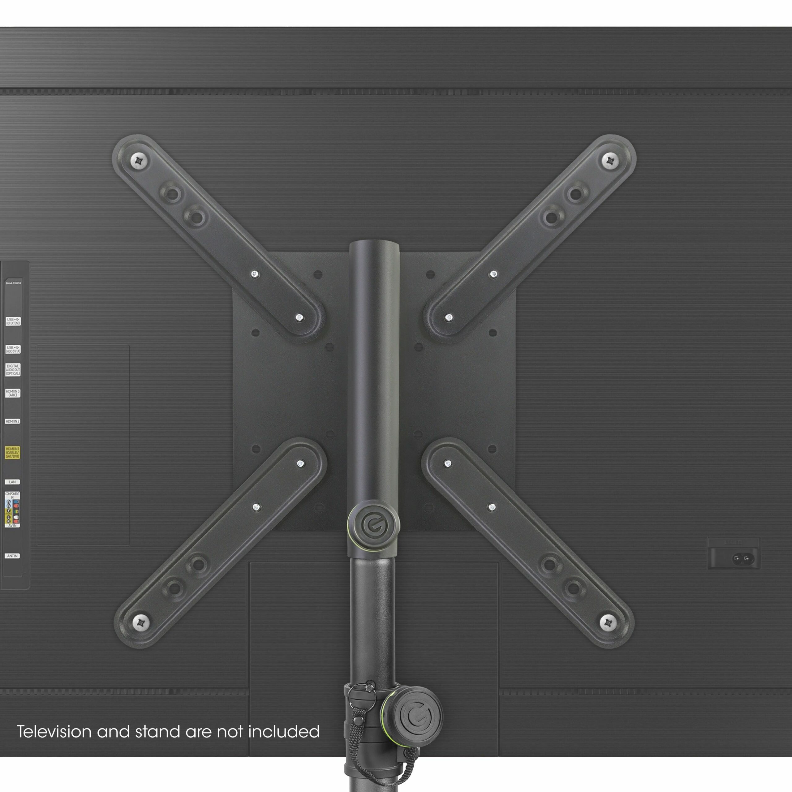 Este soporte de monitor universal se puede fijar establemente en cualquier tubo de soporte de 35 mm y es adecuado para todas las pantallas planas con plantilla de orificios VESA desde 75 x 75 hasta 400 x 400. La robusta estructura de acero con acabado texturizado en negro soporta un máximo de 30 kg y se entrega con juegos de tornillos M8 y M6 para la fijación del monitor.