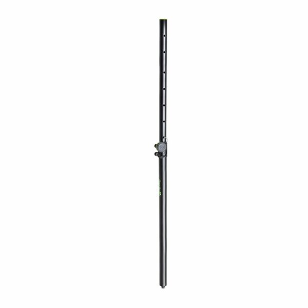 Este robusto mástil de 35 mm se puede ajustar a una altura de 1,05 a 1,8 m en incrementos de 7,5 cm. Está provisto de una abrazadera de acero con tornillo de bloqueo ergonómico y pasador de seguridad para bloquear la altura.