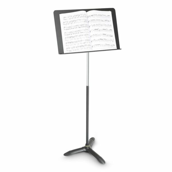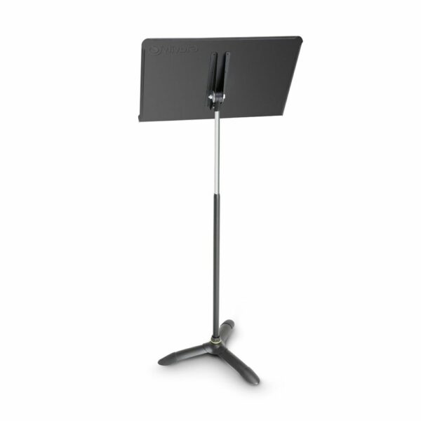El NSORC1L es un robusto atril de partituras ultraligero y ajustable, fabricado en acero con recubrimiento texturizado negro al estilo de los atriles para orquesta. La inclinación de la gran bandeja de 50 x 33,5 cm de aluminio ligero y la altura del atril se pueden regular sin tornillos de ajuste, solo con la fricción.