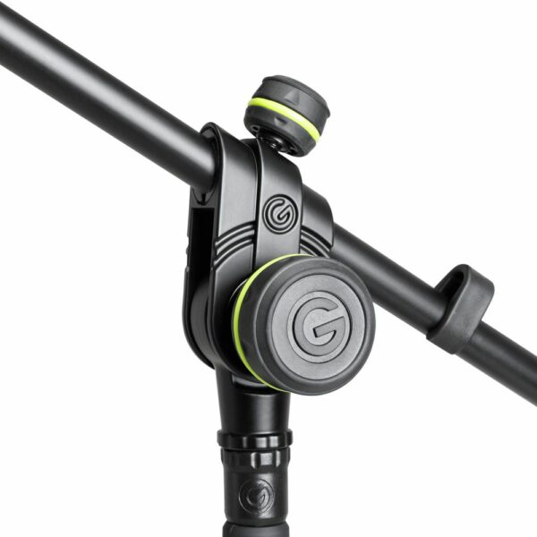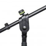 El MS 2322 B es un pie de micrófono de alta calidad, con un tubo muy resistente y acabado en negro texturizado, que alcanza una altura máxima de 168 cm. La base redonda de hierro fundido ofrece una gran estabilidad y la superficie inferior está recubierta de goma, lo que favorece el aislamiento acústico y protege el suelo. La posición y la inclinación del brazo jirafa telescópico se pueden ajustar de manera muy precisa mediante 2 tornillos de fijación. Su sistema de bloqueo rápido y longitud máxima de 88 cm ofrecen una gran flexibilidad en cuanto al posicionamiento del micrófono. El manguito de ajuste de altura, liso y duradero, y las roscas de apriete del GMS 2322 B son de plástico ABS de alta resistencia con un recubrimiento de material termoplástico antideslizante y suave al tacto para hacer más cómodo su manejo. Además, la contratuerca especialmente diseñada permite un montaje rápido y seguro del pie de micrófono, sin necesidad de herramientas. El GMS 2322 B se entrega con un juego adicional de anillos de color negro, aunque hay disponibles anillos de otros colores para personalizarlo a su gusto.