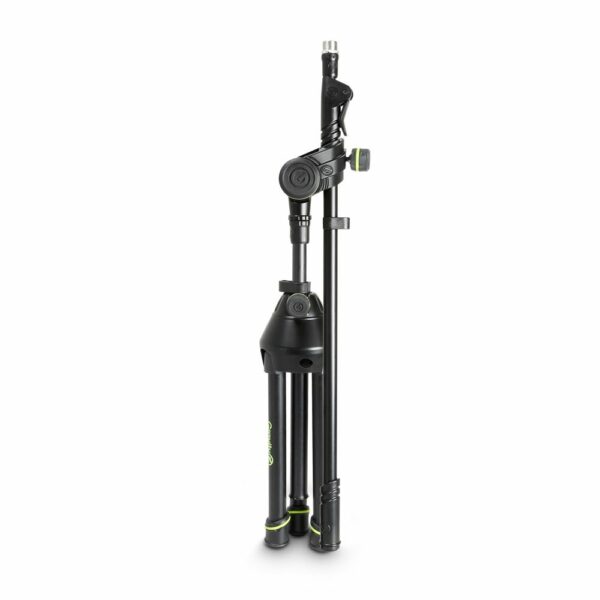 El GMS 3122 HDB es un pie de micrófono de alta calidad, con un tubo muy resistente y acabado en negro texturizado. Este trípode de gran estabilidad cuenta con una pesada base de cinc de fundición y unos pies plegables de acero con robustas conteras de goma para proteger el suelo. La posición y la inclinación del brazo jirafa telescópico se pueden ajustar de manera muy precisa mediante 2 tornillos de fijación. Con el sencillo sistema de bloqueo rápido se consigue llegar a los 88 cm; una contratuerca especialmente diseñada permite el montaje rápido y permanente del soporte del micrófono sin necesidad de herramientas. El GMS 3122 HDB se entrega con un juego adicional de anillos de color negro, aunque hay disponibles anillos de otros colores para personalizarlo a su gusto.
