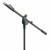 El MS 4222 B es un pie de micrófono de alta calidad, con un tubo muy resistente y acabado en negro texturizado, que alcanza una altura máxima de 74 cm. Este trípode de gran estabilidad cuenta con una base de cinc de fundición de grandes dimensiones, y unos pies plegables de acero con robustas conteras de goma para proteger el suelo. La posición y la inclinación del brazo jirafa telescópico se pueden ajustar de manera muy precisa mediante 2 tornillos de fijación. Su sistema de bloqueo rápido y longitud máxima de 88 cm ofrecen una gran flexibilidad en cuanto al posicionamiento del micrófono. El manguito de ajuste de altura, liso y duradero, y las roscas de apriete del MS 4222 B son de plástico ABS de alta resistencia con un recubrimiento de material termoplástico antideslizante y suave al tacto para hacer más cómodo su manejo. Además, la contratuerca especialmente diseñada permite un montaje rápido y seguro del pie de micrófono, sin necesidad de herramientas. El MS 4222 B se entrega con un juego adicional de anillos de color negro, aunque hay disponibles anillos de otros colores para personalizarlo a su gusto.