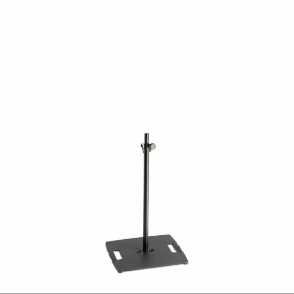 El soporte de iluminación LS 331 B consta de una base grande y pesada de acero, que proporciona un estabilidad firme, y de un mástil de 35 mm de una extensión que alcanza una altura máxima de 2,4 m. El mástil está provisto en un extremo de una rosca hembra M10, mientras que el extremo de la base es una rosca macho M20. La base lleva dos asas integradas que facilitan el transporte.
