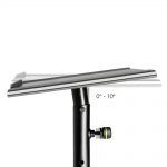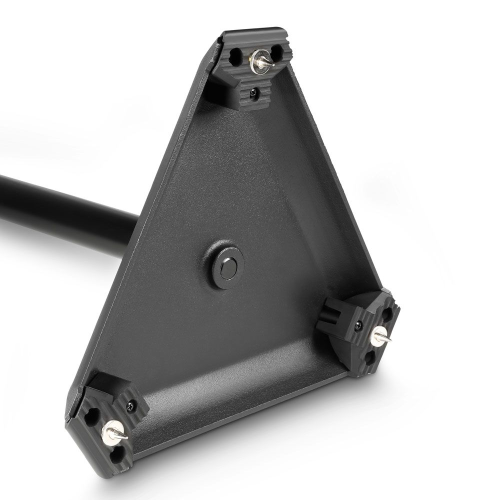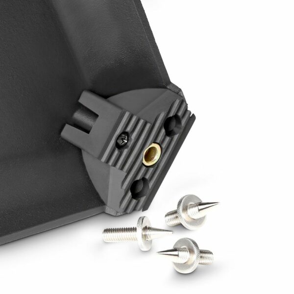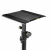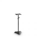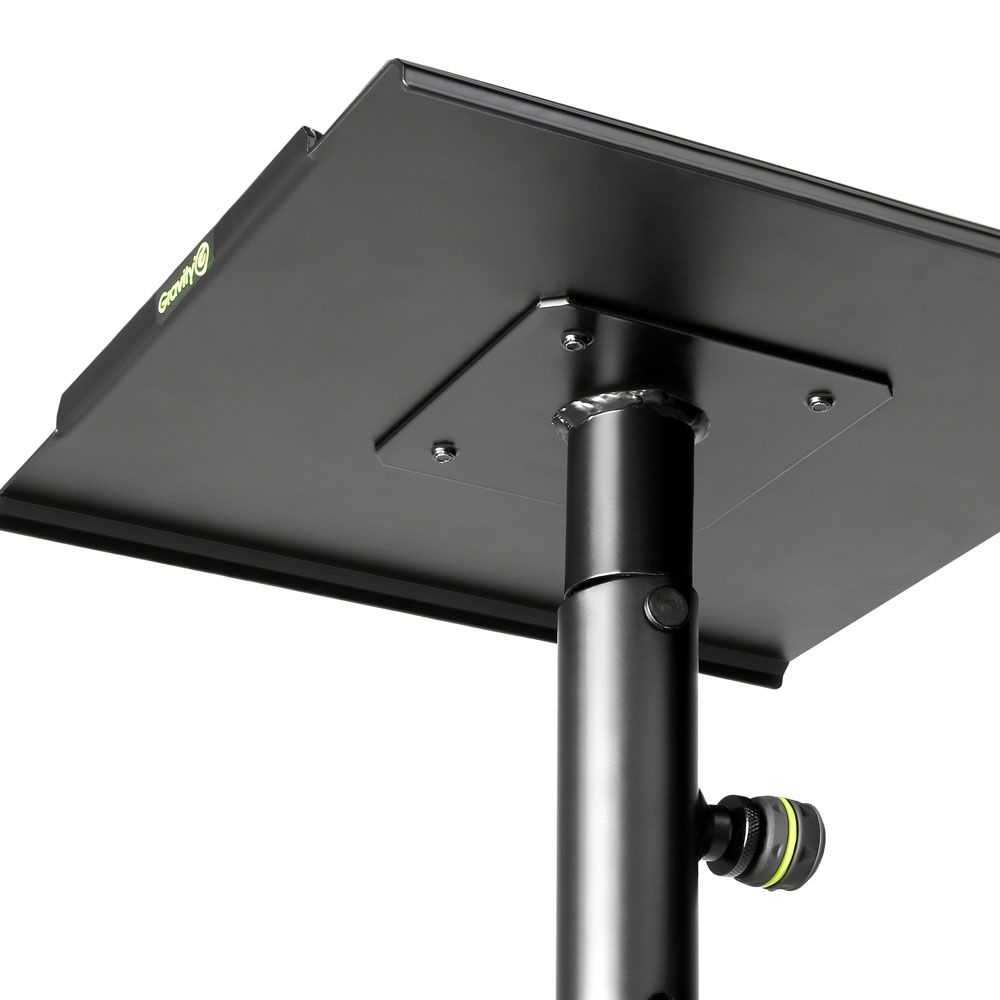 El soporte de monitor de estudio GSP 3202 VARITILT® de Gravity está equipado con una robusta base triangular de hierro de fundición y una bandeja de acero de 25 x 25 cm con revestimiento de espuma que sirve para amortiguar las vibraciones. Es ideal para colocar el altavoz a una altura regulable entre 90 y 150 cm y con una inclinación regulable continua de hasta 10°. El soporte se suministra con un juego de puntas. Montadas en los grandes pies de goma integrados, estas puntas de desacoplamiento consiguen un eficaz aislamiento del suelo.