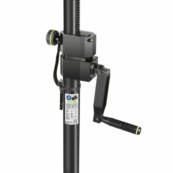NUEVO Cód. GSP4722B Gravity SP4722B – Trípode con manivela para altavoces Mecanismo de manivela para subir y bajar fácilmente la caja acústica Altura ajustable de 1,5 m a 2,2 m Capacidad de carga de 50 kg Collarín de gran duración fabricado en aluminio de fundición Pies de trípode plegables para un fácil transporte