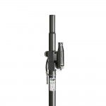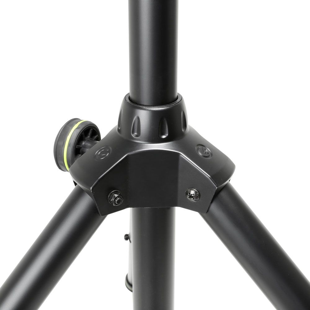 El GSP 4722 B de Gravity es un robusto soporte para altavoz que cuenta con un práctico mecanismo de manivela y cremallera para situar la caja acústica a la altura deseada de forma rápida y fácil. Está fabricado con tubos de acero de gran resistencia y sus tres pies plegables están sujetos por un sólido collarín de aluminio de fundición. El tubo de extensión se bloquea por medio de una cómoda rosca y un pasador de seguridad. El trípode de manivela se puede ajustar a una altura de 1,5 m a 2,2 m. El soporte de altavoz está certificado por TÜV / GS.