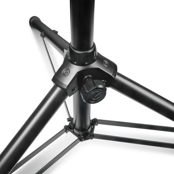 El intenso trabajo en las giras, donde el tiempo apremia, solo son capaces de soportarlo trabajadores fuertes y materiales robustos, como el soporte de altavoz de la serie Touring de Gravity. Extremadamente estable, con tres patas doblemente apuntaladas y un sistema de suspensión de aluminio fundido. Los tubos de acero son especialmente resistentes y soportan hasta 50 kg de carga. El montaje y desmontaje es increíblemente rápido y seguro gracias al pasador de seguridad LockPin®, que se enclava automáticamente. Cuando se bloquea el tubo de extensión de 35 mm, solo accionando la palanca de desbloqueo se puede volver a soltar el pasador. El soporte de altavoz se puede ajustar hasta 194 cm de altura. Para su uso en giras, los tornillos de ajuste con botones metálicos macizos e imperdibles son una ventaja inestimable.