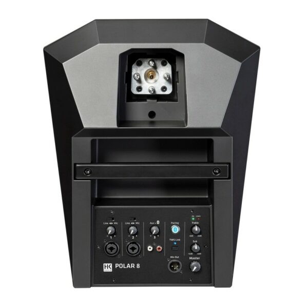 Sistema de columna compacta de 3 vías autoamplificada. Sistema modular formado por la columna de medios/agudos y el módulo de subgraves con conectividad Bluetooth 5.0. SPL Máx: 1118 dB. Amplificador clase D con gran…rango dinámico. Potencia de pico: 1.200 W. Módulo de subgraves: 1 x 8”. Unidad de medios/agudos: 6 x 2,5”. Respuesta en frecuencia (-10 dB): 50 Hz – 20 kHz. Cobertura: 120° x 35°. DSP de 24 bits con 5 presets definidos por el usuario mediante pantalla LCD.