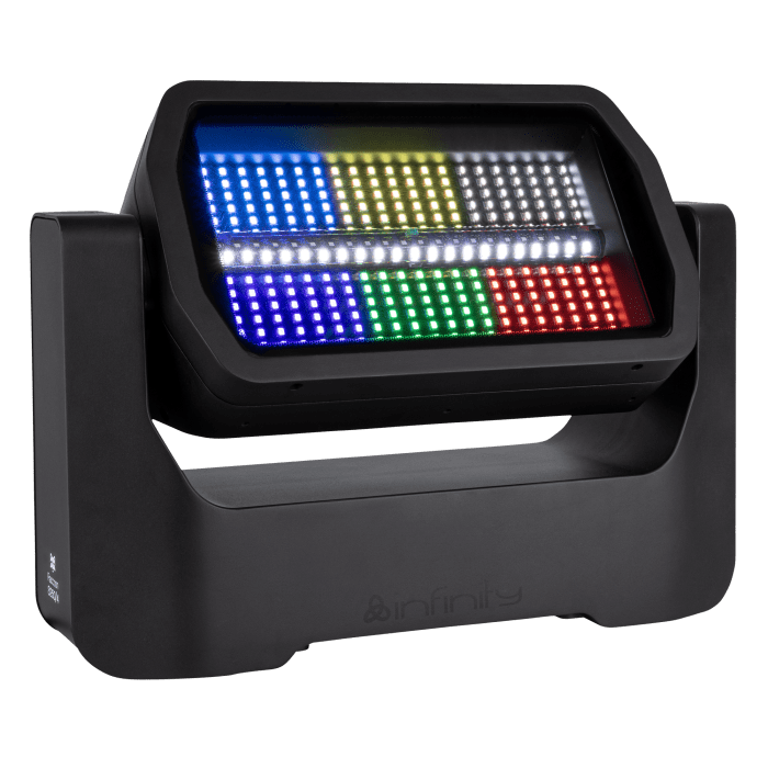 Cód, 200601 Infinity – Raccoon S250/4 Junior – Luz estroboscópica/wash profesional con inclinación motorizada, 252 LED RGBW (control de 6 secciones) 21 LED CW (control de 3 secciones) Premium 252 LED RGBW (control de 6 secciones) 21 LED CW (control de 3 secciones) Hasta 55.300 lúmenes Inclinación motorizada CRI alto (92) El Infinity Raccoon S250/4 Junior es un dispositivo combinado estroboscópico/wash con una función de inclinación motorizada y un ángulo de haz de 130 grados. Los 252 LED RGBW proporcionan efectos wash de más de 14.000 lúmenes y pueden controlarse en 6 secciones con 42 LED cada una. La luz…