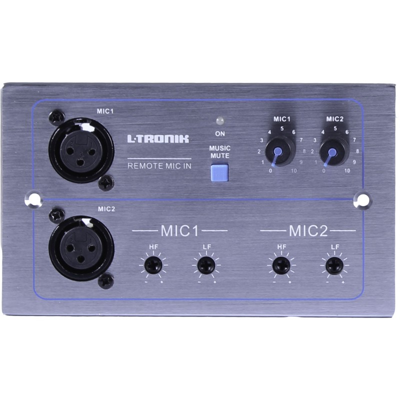 L-TRONIK – MX-882 – Panel microprocesado para matrices MX-880. Conexión frontal para 2 MIC (XLR) con control volumen y corrector de tonos para graves y agudos independientes. Comunicación RS-485 mediante cable cat 5 y conector RJ45