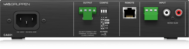 «Amplificador compacto de 1 canal. Solución perfecta para aplicaciones comerciales e industriales que requieren un sistema con una alta calidad de sonido, fácil de instalar y operar. Ideal para bares, restaurantes, tiendas, hoteles, centros educativos, entre otros. Diseño certificado Energy Star. Operación Low-Z (4/8 Ohm) y High-Z (70/100 V) con filtro de paso alto conmutable. Tecnología de potencia constante para un rendimiento de audio superior y una alta fiabilidad. Potencia máxima de salida: 60 W. Tecnología de amplificador sin ventilador refrigerado por convección para bajo ruido. Protección del amplificador: térmica, sobrecarga, DC y alta frecuencia. Impedancia de carga mínima: modo 4 ?: 4 ?, modo 8 ?: 8 ?, modo de salida de 70 V: 82 ?, modo de salida de 100 V: 166 ?. Conexión RJ45 en el panel posterior para una amplia gama de opciones de control remoto, incluida la serie CRC-V, mediante cableado Ethernet. Controles individuales de volumen principal y graves/agudos en el panel frontal. Conectores de entrada: 1 x conector Euroblock de 3 pines, 1 x RCA estéreo sumado. Conectores de salida: 1 x conector Euroblock de 2 pines con interruptores DIP para la selección de operación de 100 V, 70 V, 8 ? o 4 ?. Chasis de aluminio anodizado negro con fondo de acero pintado de negro. Medidas: 44 mm x 218 mm x 299 mm. Peso: 2.2 kg»