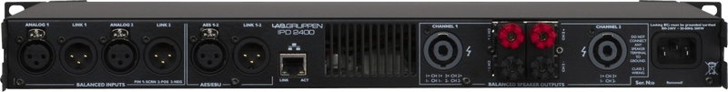 Amplificador compacto de 2,400 vatios y 2 canales con control DSP para aplicaciones de touring