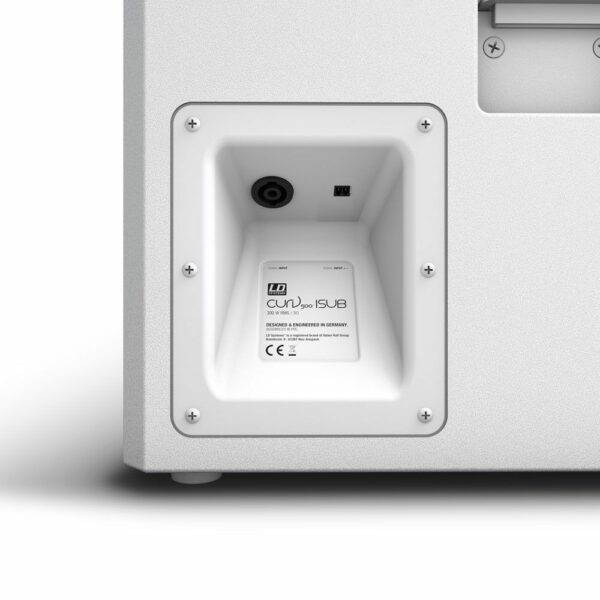 El iSUB es un subwoofer bass reflex de tamaño compacto, con un motor de 10″ y poco fondo, especialmente diseñado para la instalación fija de sistemas CURV 500. Su respuesta en frecuencia de 47 a 150 Hz logra una reproducción de graves concisa y dinámica, con empuje y definición, y ofrece una potencia de 200 W RMS. La elegante carcasa con laca protectora texturizada y rejilla frontal de acero está provista de un conector compatible speakON y un bloque de terminales con conexión por tornillo para las entradas, así como ocho puntos de anclaje para volado M8. Disponible en color negro o blanco, el iSUB se suministra con un soporte plano de montaje en pared y techo y un juego de pies de goma.