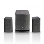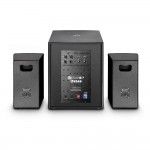 El DAVE 18 G3 es un potente sistema de PA con un subwoofer y dos satélites, fácil de transportar, que ofrece un sonido dinámico y cristalino con graves contundentes en un tamaño compacto. Con una respuesta en frecuencia de 32 Hz a 20 kHz y un SPL de pico de 135 dB, es ideal como equipo de sonorización para aplicaciones móviles e instalaciones fijas. Fabricado en robusto contrachapado de abedul de 15 mm, los satélites de diseño cerrado están provistos de un motor coaxial de 10″/1″, mientras que el subwoofer bass reflex aloja un woofer de 18″ y unos módulos de amplificación de clase D que entregan una potencia de 4800 W. El procesador digital de señales, limitador multibanda, y las protecciones contra cortocircuito y sobreintensidad garantizan una excelente reproducción del sonido y un funcionamiento fiable. El subwoofer del DAVE 18 G3 dispone de entradas por XLR, jack de 6,3 mm y RCA para conectar todo tipo de fuentes de señal. También cuenta con controles de ajuste individual del nivel del sistema y del subwoofer, un conmutador de inversión de fase y conectores compatibles Speakon en los satélites. Entre otros componentes, el DAVE 18 G3 incluye rejillas metálicas, una rosca M20 para montaje en soporte y las asas Evolutive de LD System en el subwoofer para transportarlo cómodamente, así como un vaso de soporte con ajuste vertical en los altavoces satélite para lograr el ángulo de cobertura óptimo.