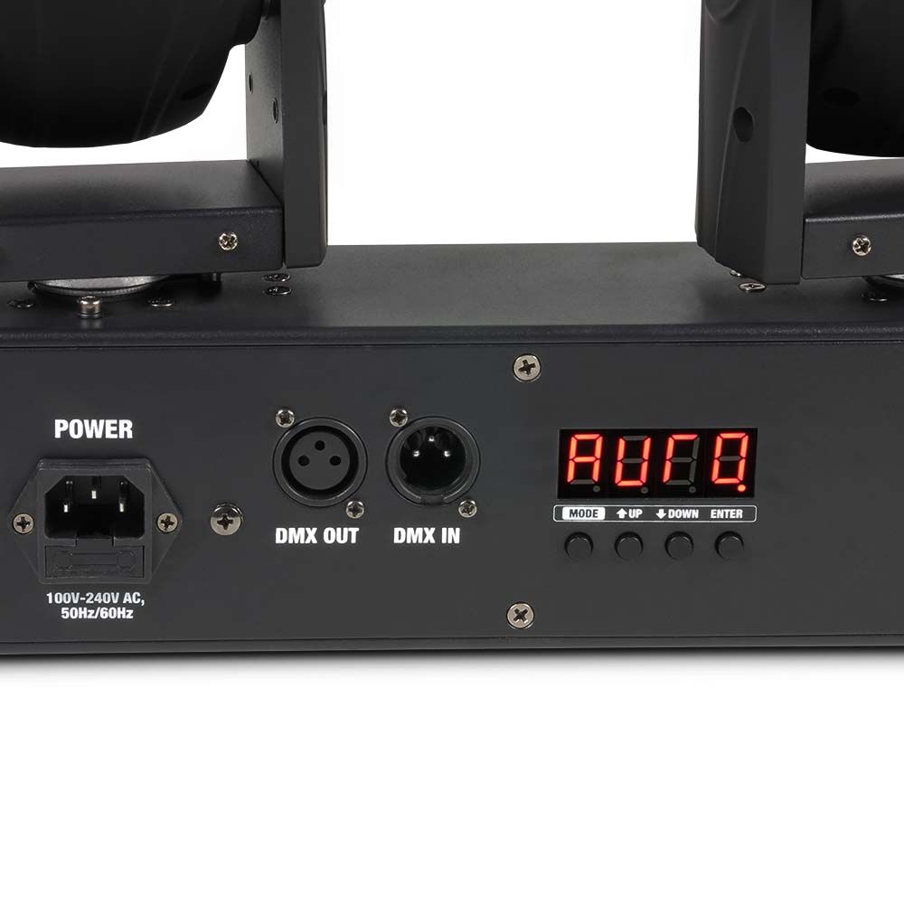 cambio de color , Dimmer , estrobo , Movimiento horizontal (PAN) , Movimiento vertical (TILT)