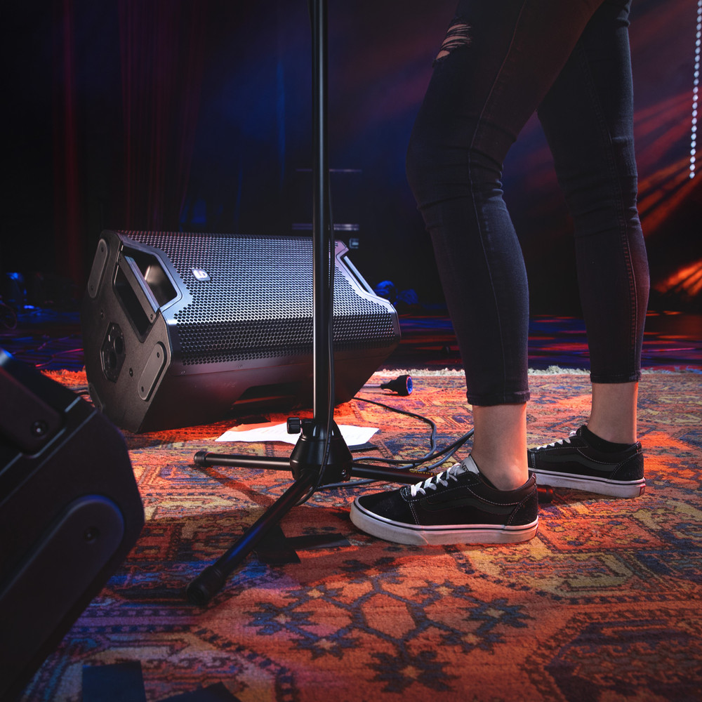 Si se utiliza en vertical, el vaso de soporte de doble inclinación de 36 mm permite elegir un ángulo de 0° o 5° y adaptar el sistema de manera óptima a la situación de sonorización correspondiente. Hay disponible una amplia gama de accesorios prácticos para su instalación y transporte. Las 4 asas de aluminio con superficie ergonómica revestida de goma ofrecen un agarre óptimo al transportar la caja.