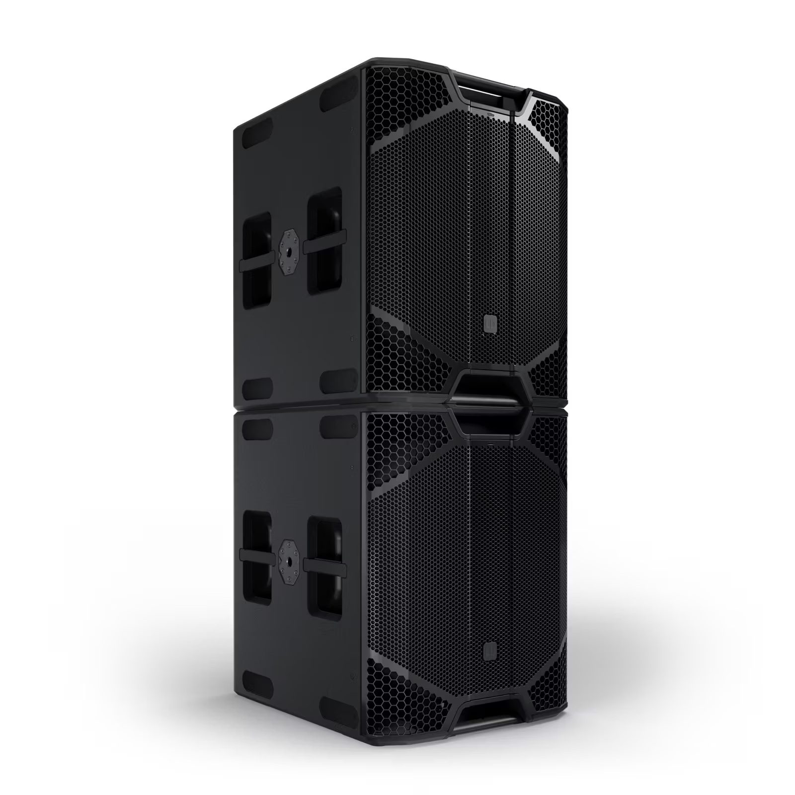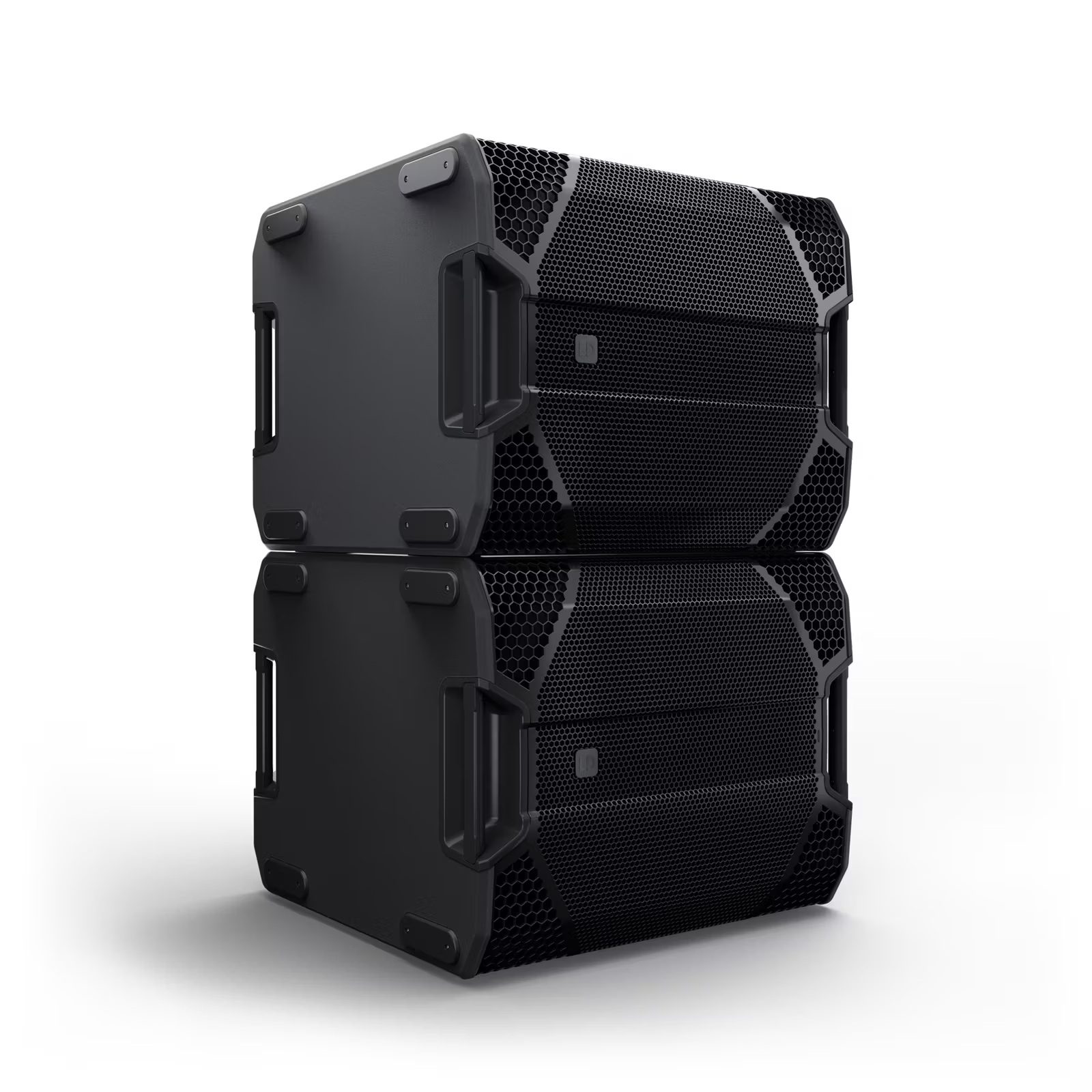 Gracias a las muescas de apilado integradas y a dos vasos de soporte M20, el subwoofer se puede apilar e integrar de forma flexible tanto en horizontal como en vertical.