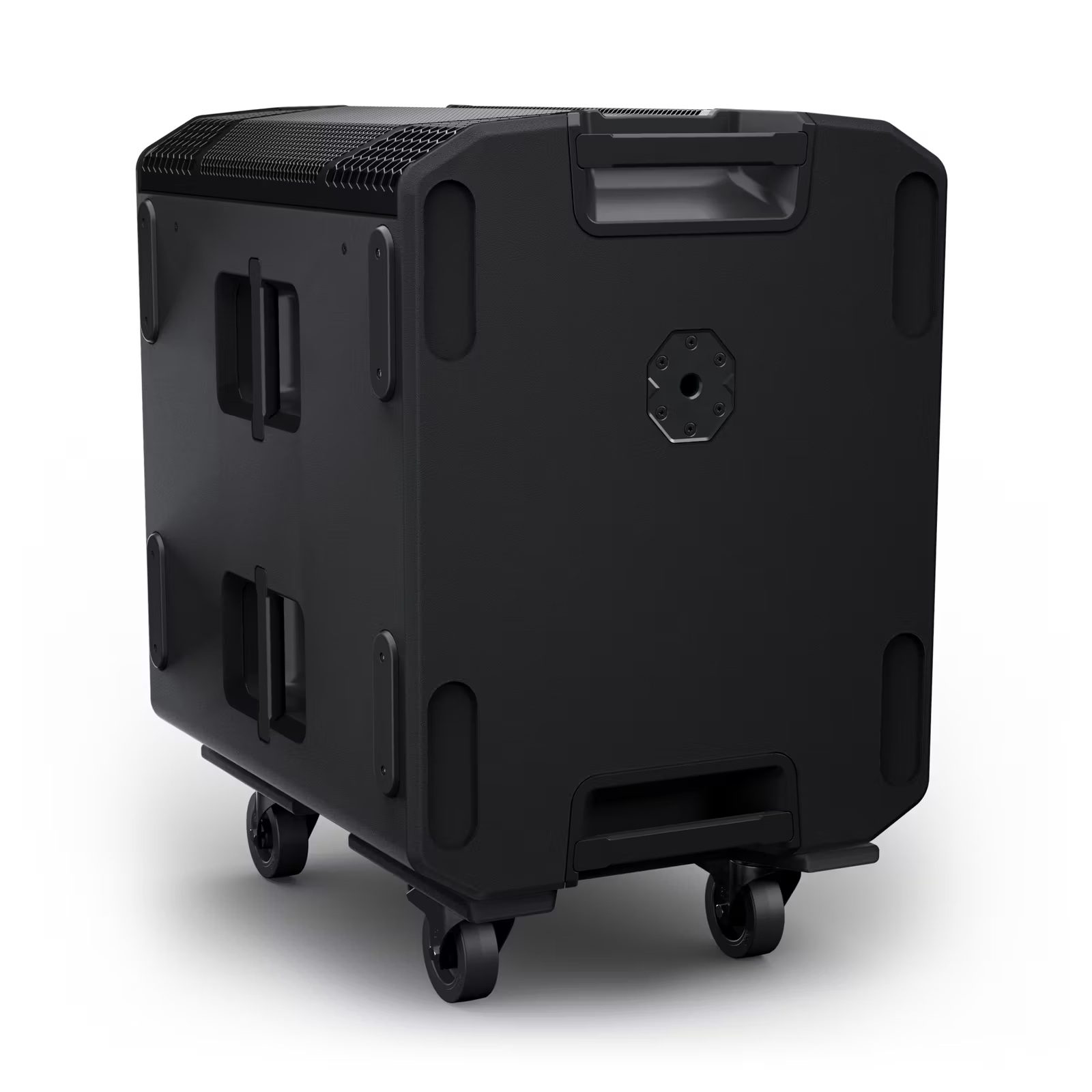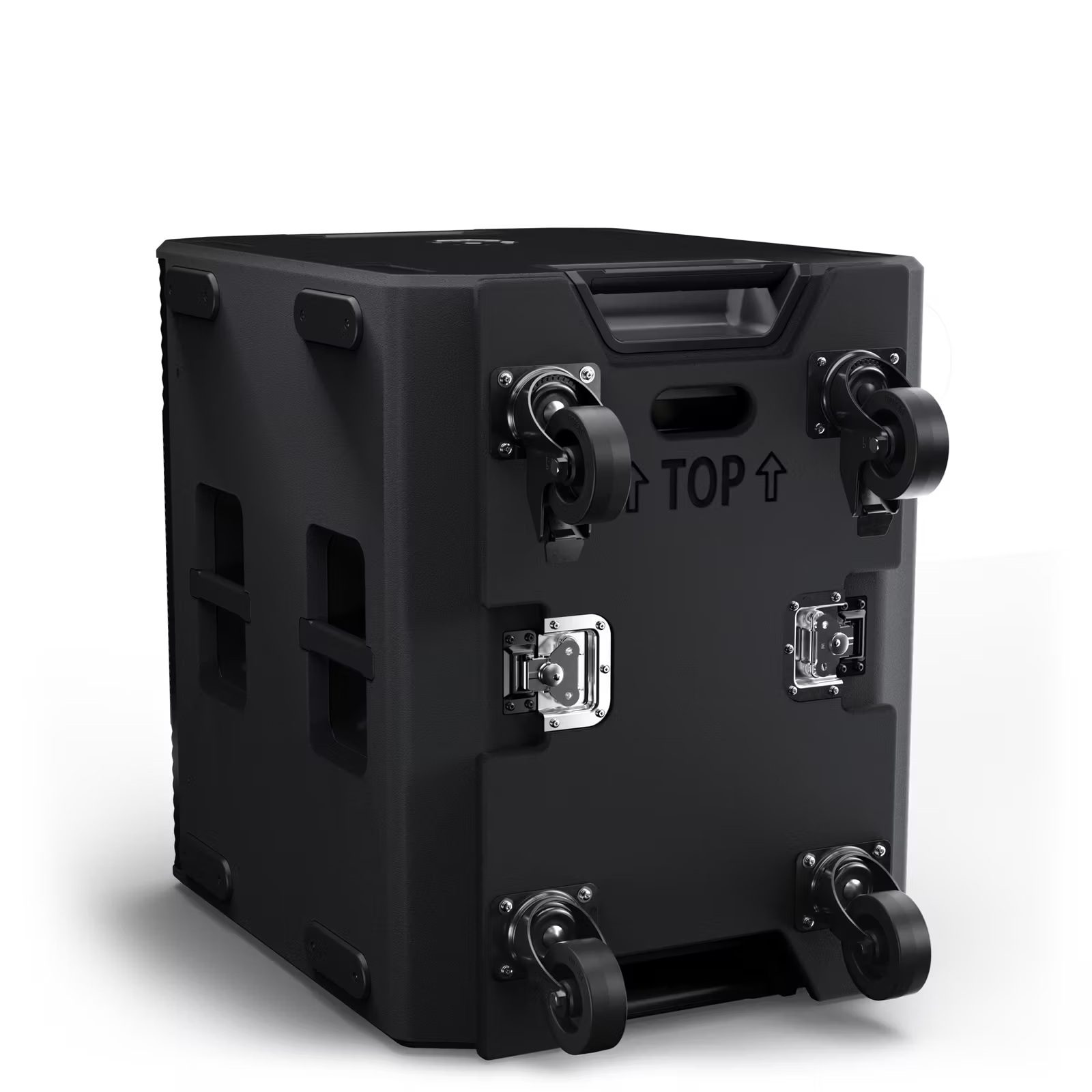 La carcasa de 15 a 18 mm de tablero abedul es compacta por diseño, y recuerda a las dimensiones de un modelo de 18″. Con una anchura de tan solo 562 mm, el subwoofer se puede transportar fácilmente con soluciones de transporte comunes (flightcase Sprinter/TRANSflex junto al subwoofer), ideales para los vehículos de transporte habituales (Mercedes Sprinter, Fiat Ducato, Ford Transit y VW Crafter).
