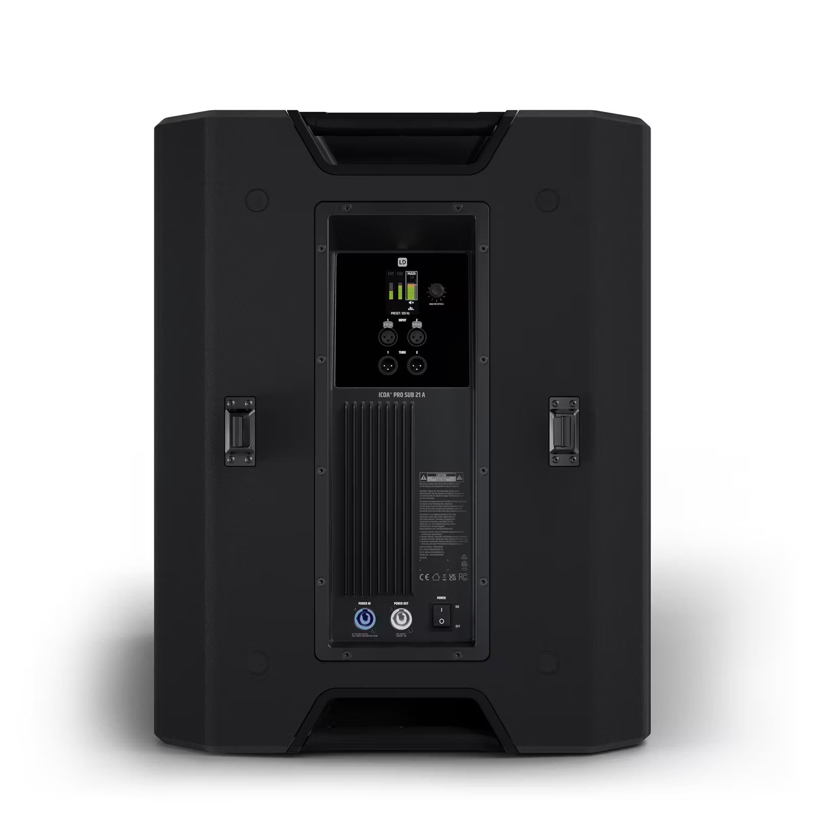 ICOA PRO SUB 21 A aúna una respuesta de graves impresionante con un diseño muy cuidado y concebido para el transporte. El subwoofer de alto rendimiento de 21″ y 3 kW con diseño bass reflex ofrece unos graves potentes, precisos y marcados gracias a su woofer de neodimio de 21″ diseñado a medida, ideal para DJ que se desplazan, locales, eventos en directo, festivales e instalaciones fijas.