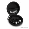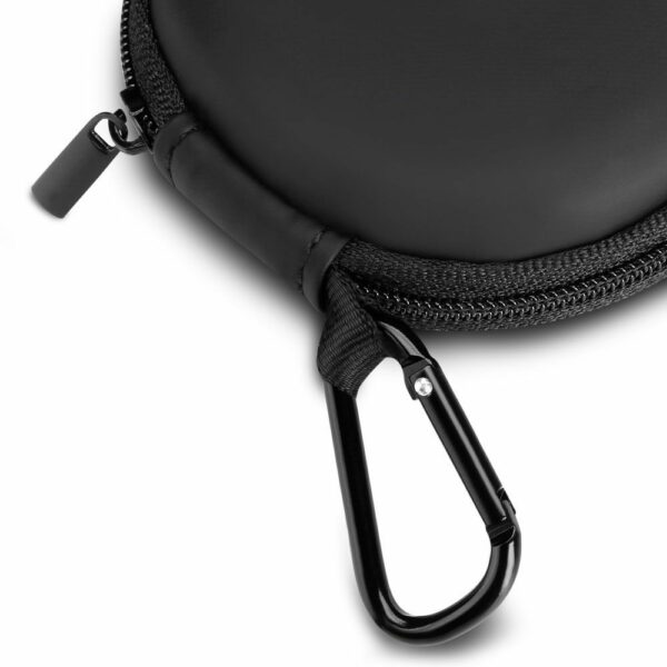 Este estuche resistente y ligero es ideal para guardar y transportar los auriculares intraauditivos. La resistente carcasa exterior está revestida con un afelpado suave que protege contra golpes, arañazos y polvo. El estuche está provisto de un compartimento interior de malla para guardar almohadillas de recambio y otros accesorios, una cremallera de cierre y un mosquetón extraíble.