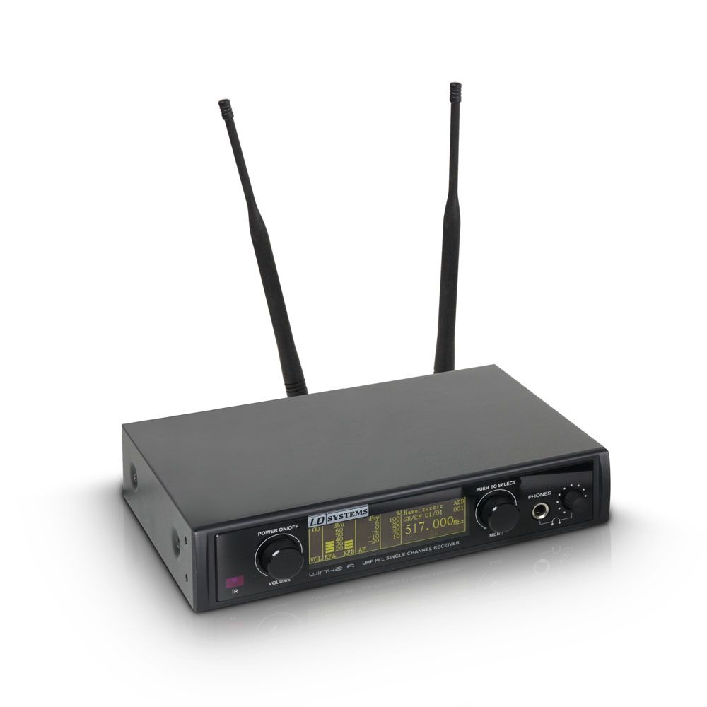 Características del sistema, por ejemplo, un indicador de estado de la batería del transmisor en la pantalla del receptor, un indicador de la (transmisor) «Mute On / Off» de función en la pantalla del receptor, 4 ecualizadores preprogramados que son conmutables en el receptor, y mucho más. Un sistema altamente profesional que incorpora la relación calidad-precio excepcional que es tan típico de LD Systems.