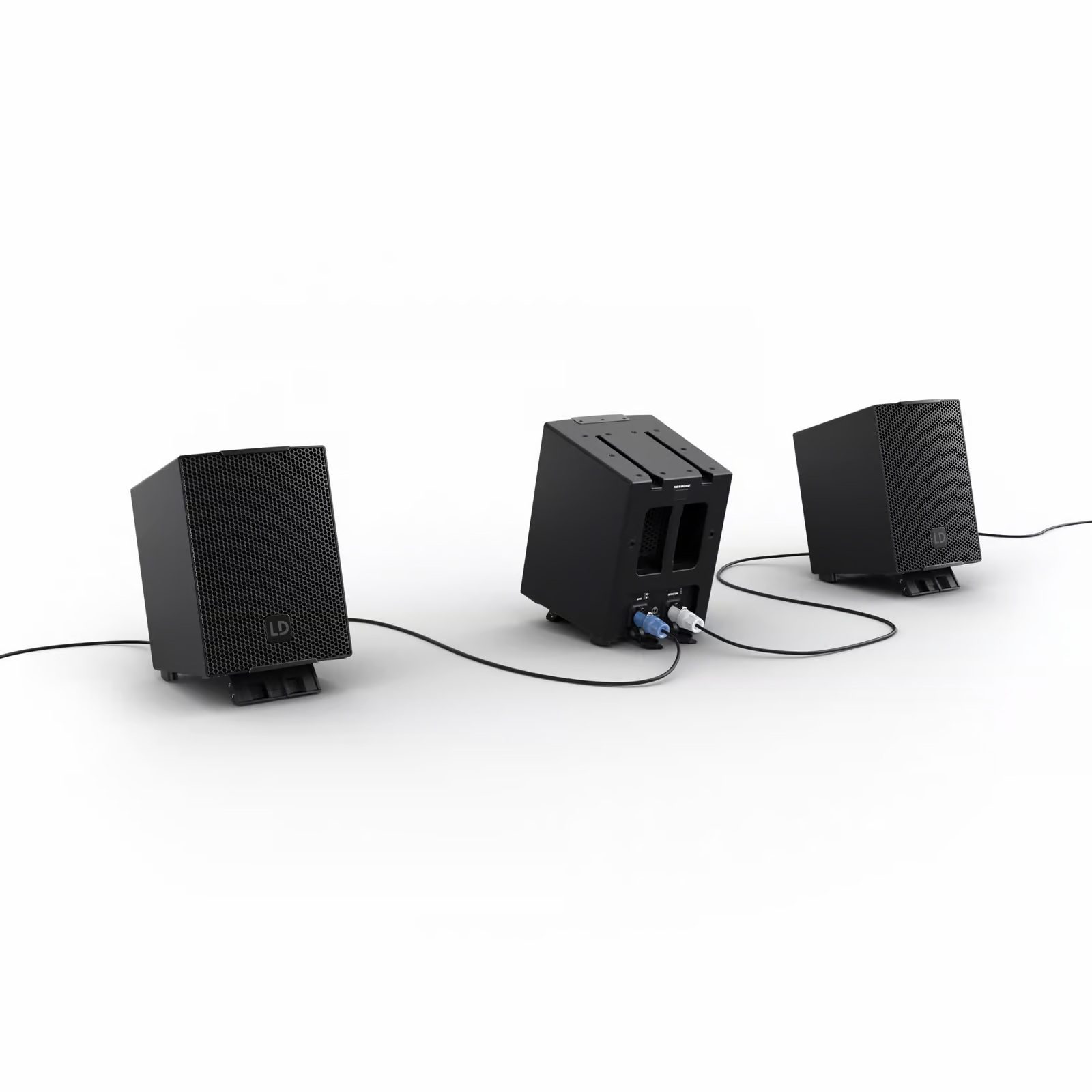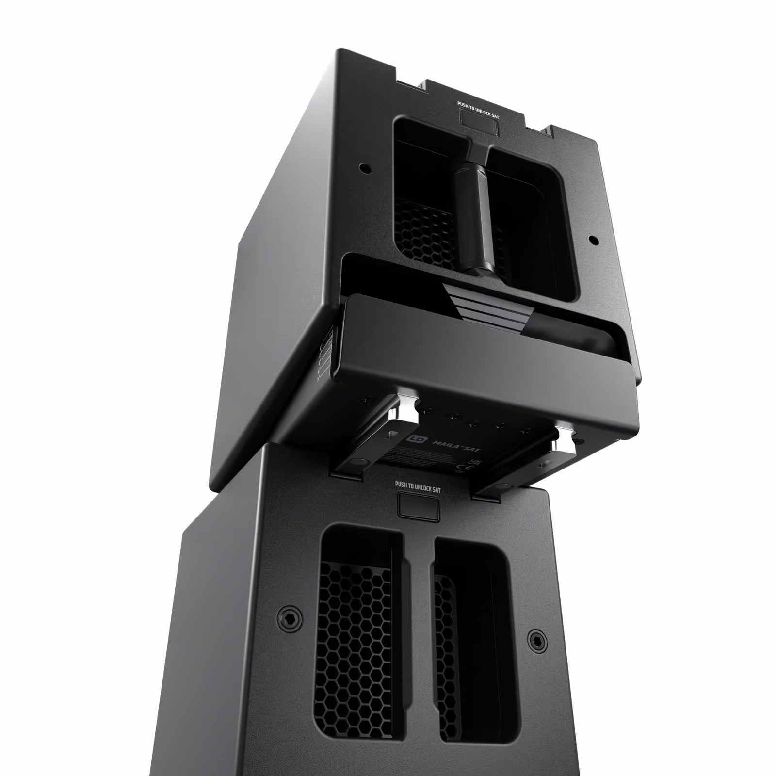MAILA SAT X ofrece un cableado limpio para ambos casos de uso. SmartLink+® proporciona una conexión mecánica y de señal segura y sin cables dentro de los arrays MAILA, mediante robustos raíles de aluminio con contactos integrados, mientras que las E/S SpeakON® admiten la conexión en cadena directa de hasta cuatro SAT X.