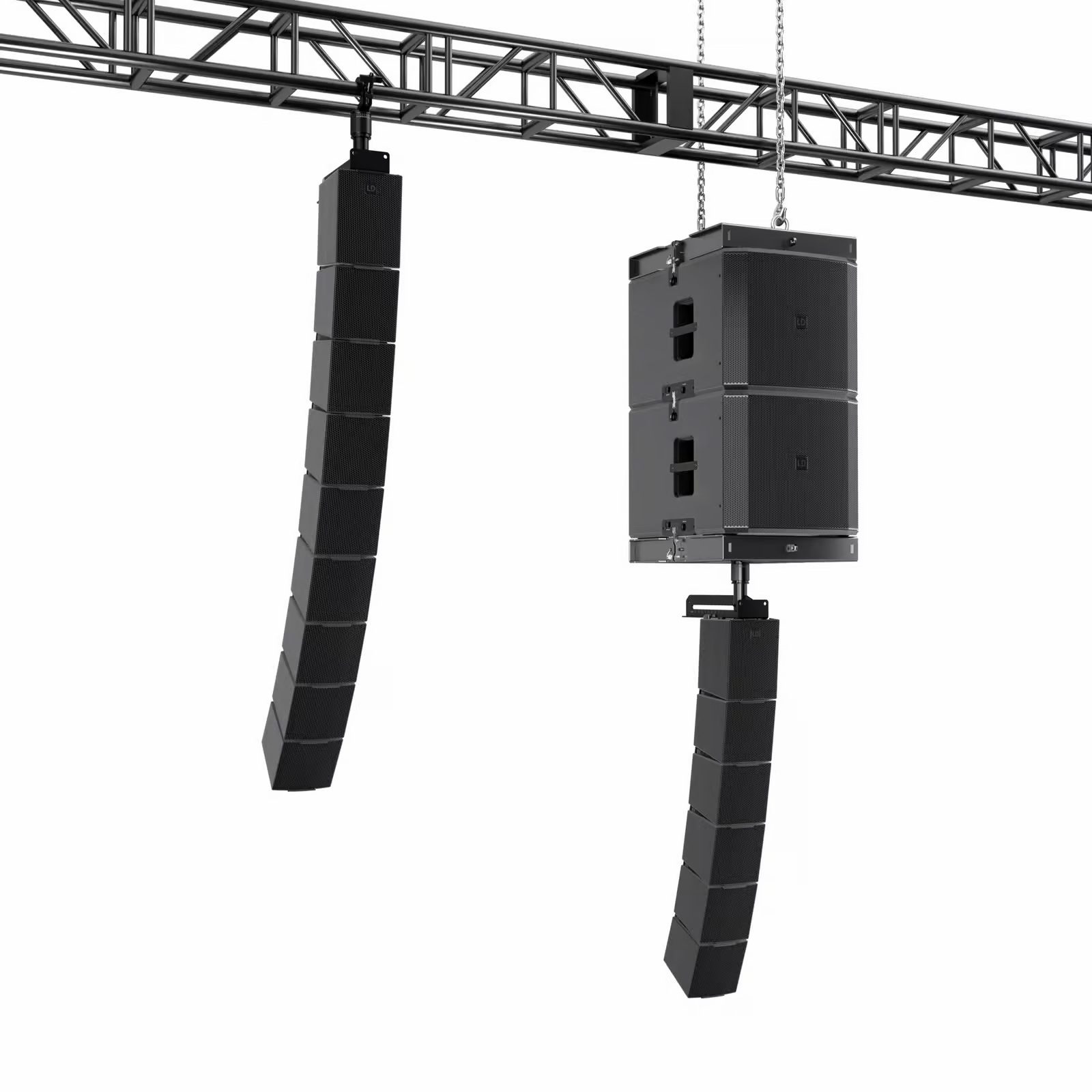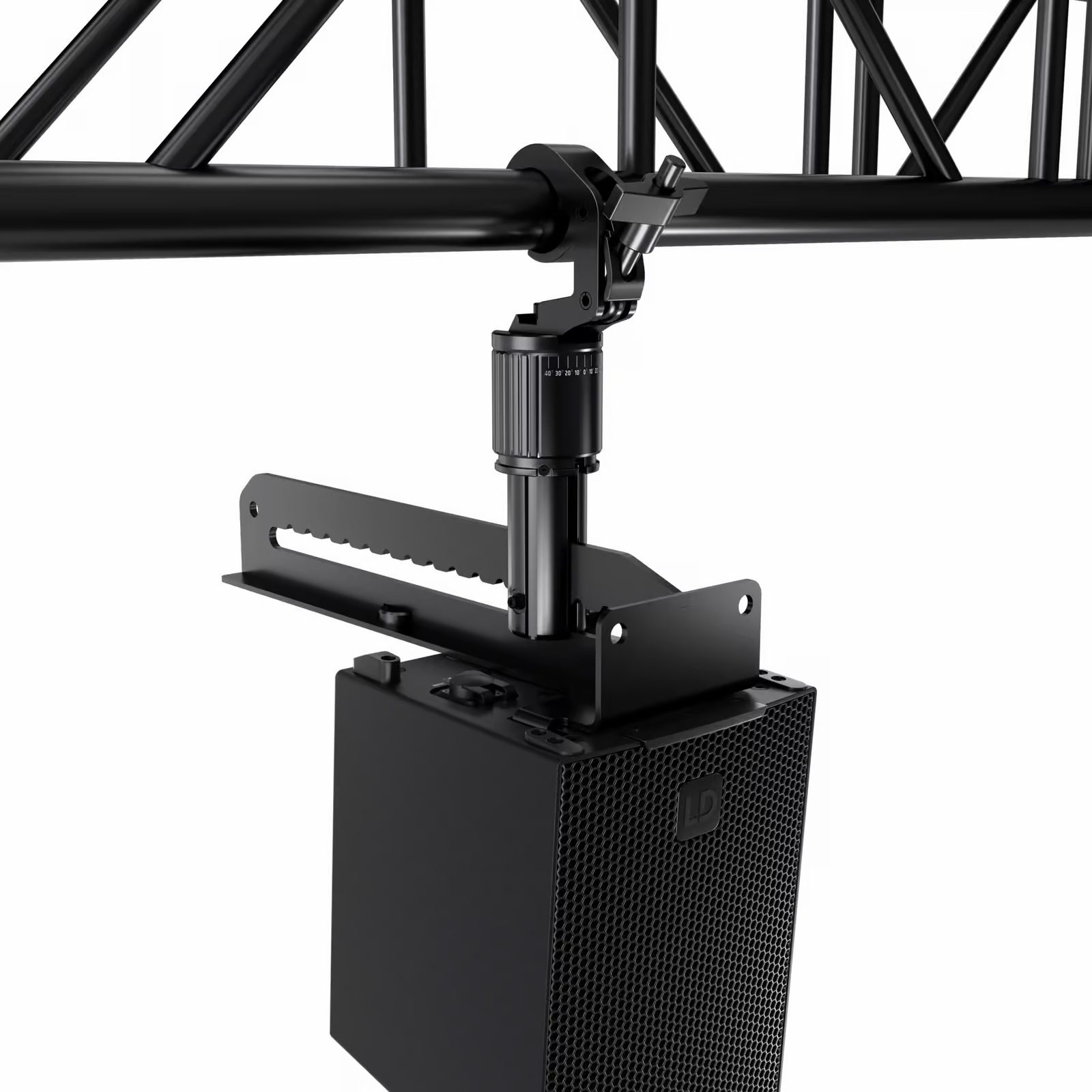 El MAILA SAT X es un satélite pasivo nearfill o array y sirve como altavoz híbrido de fuente puntual/lineal. Utiliza SAT X por sí solo y obtendrás una cobertura vertical de 40° para aplicaciones nearfill. En cuanto se monta otro MAILA SAT mediante SmartLink+®, cambia automáticamente a una característica vertical de 8° para el uso en array, lo que garantiza el comportamiento correcto sin pasos de configuración adicionales. Para una colocación flexible, el MAILA SAT X puede montarse en un poste de altavoz o volarse sobre truss utilizando el adaptador EasyMount+® opcional. Para despliegues nearfill o puntuales, el soporte de inclinación extraíble integrado (0°, 4°, 9°, 14° y 19°) proporciona un ajuste estable, rápido y preciso.