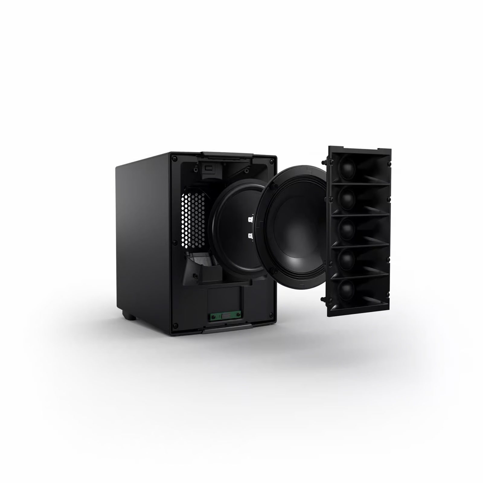 Dentro de la elegante y robusta caja de aluminio monobloque, MAILA SAT X utiliza la misma plataforma acústica central que MAILA SAT: cinco tweeters de cúpula de 1″ dispuestos verticalmente y un transductor de medios de 6,5″ en un diseño coaxial basado en la avanzada tecnología WaveAhead®, acoplados casi sin interferencias mediante SonicGuide® (dos guías de ondas combinadas). La membrana pasiva adicional ofrece un rendimiento ampliado de medios-graves hasta 100 Hz, a pesar del tamaño compacto de su caja. El resultado es una alta definición y un comportamiento controlado en todo el rango crítico vocal y de presencia, con una dispersión horizontal constante de 100°.