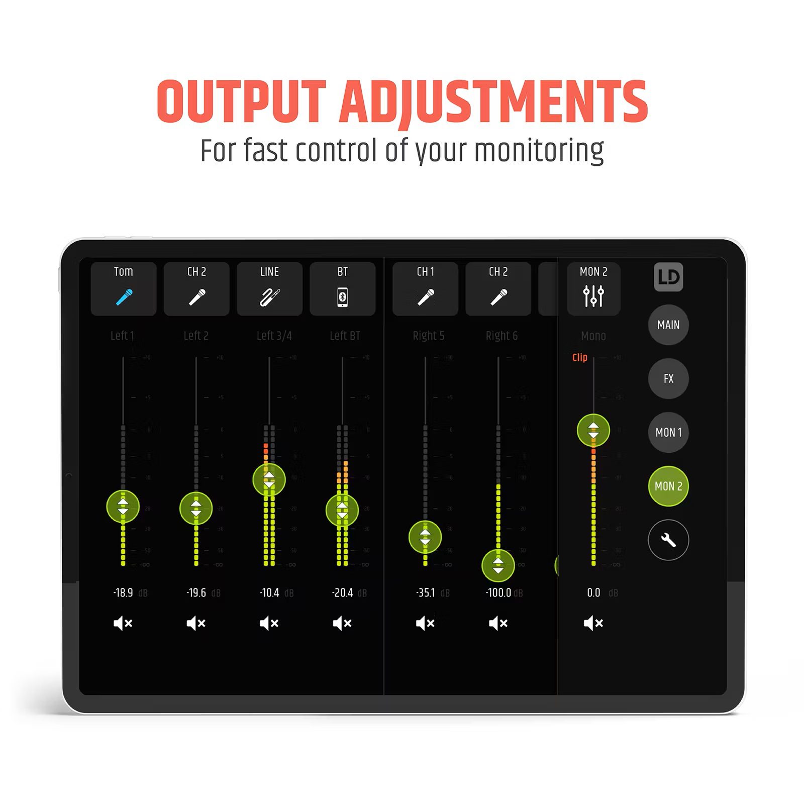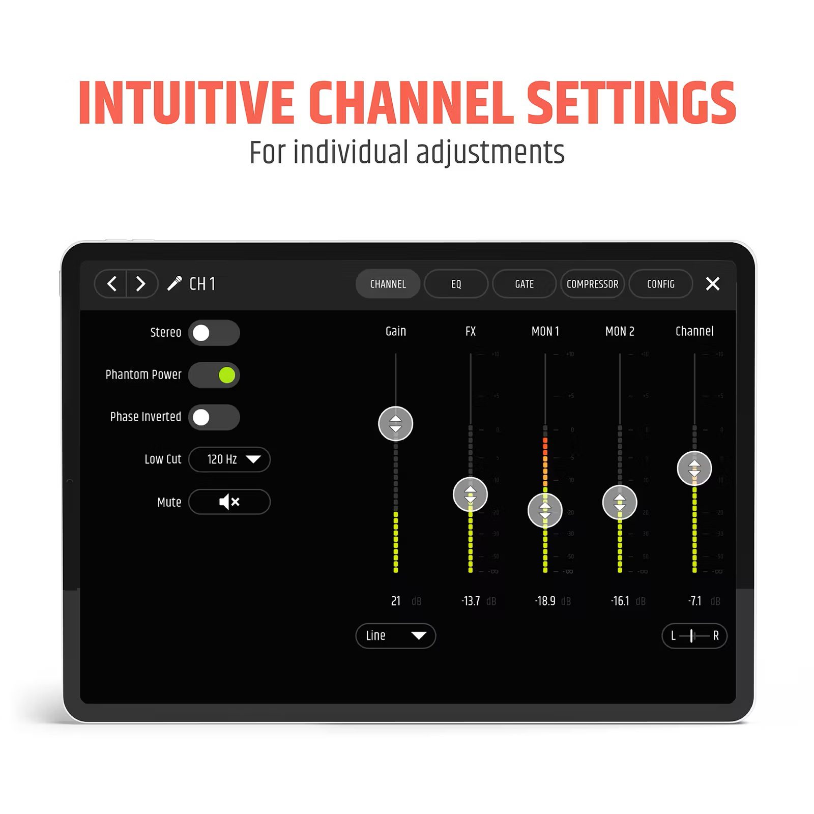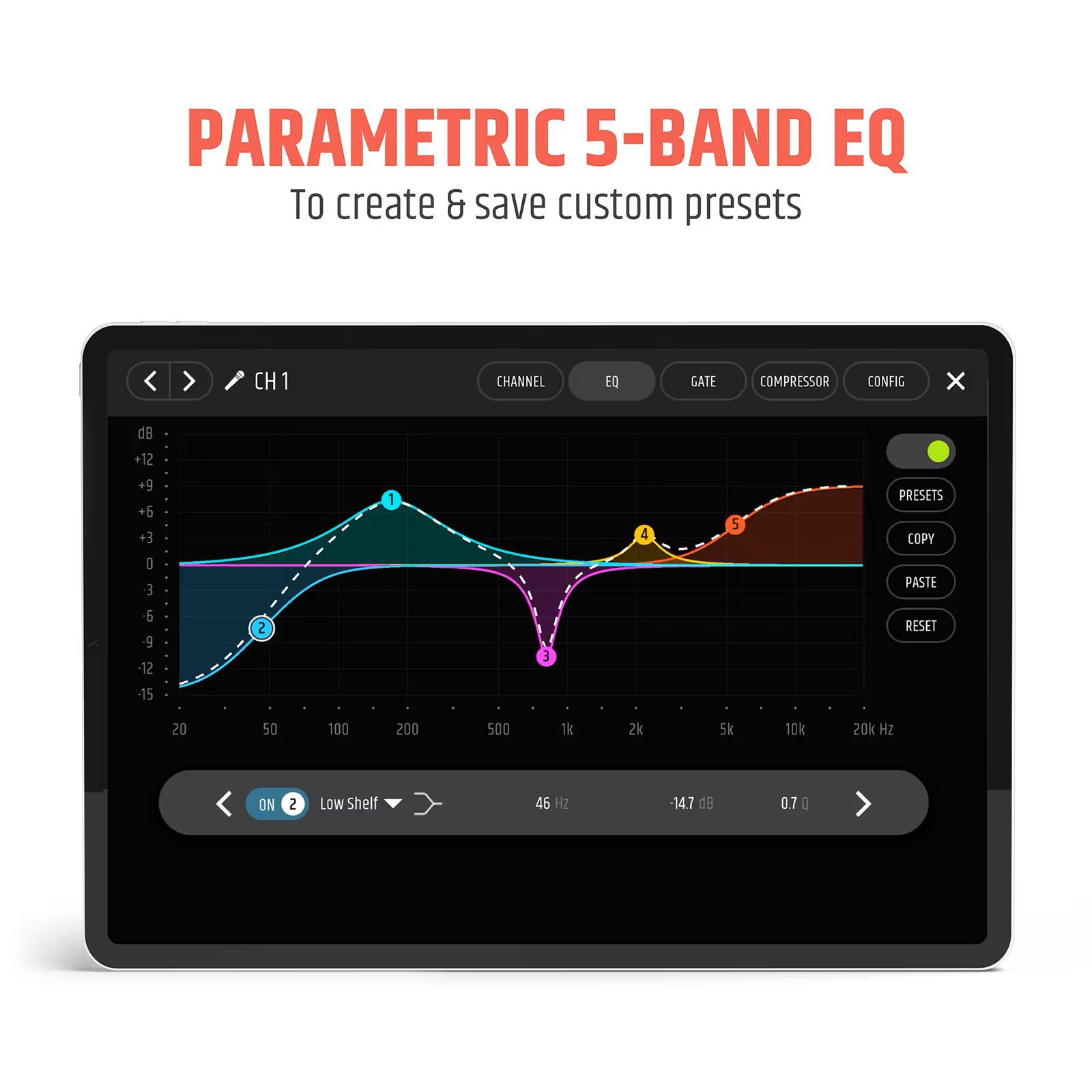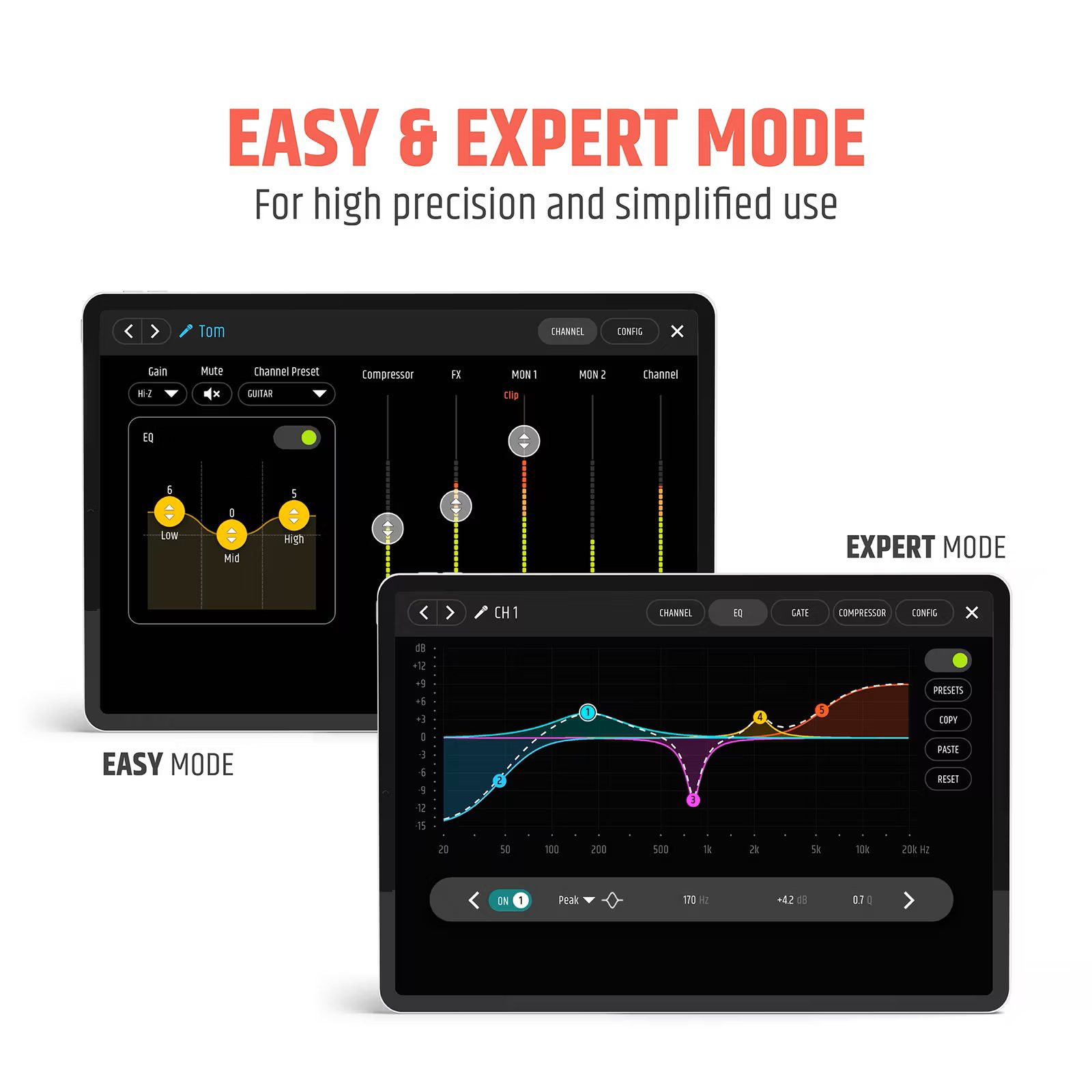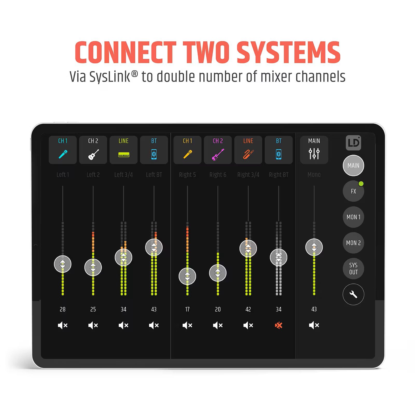 SysLink® (conexión en cascada de 2 sistemas), Mezclador de 6 canales, App Control (Easy + Expert Mode), Bluetooth Audio Streaming, Efectos y dinámicas integrados, Columna cardioide, Footswitch Input