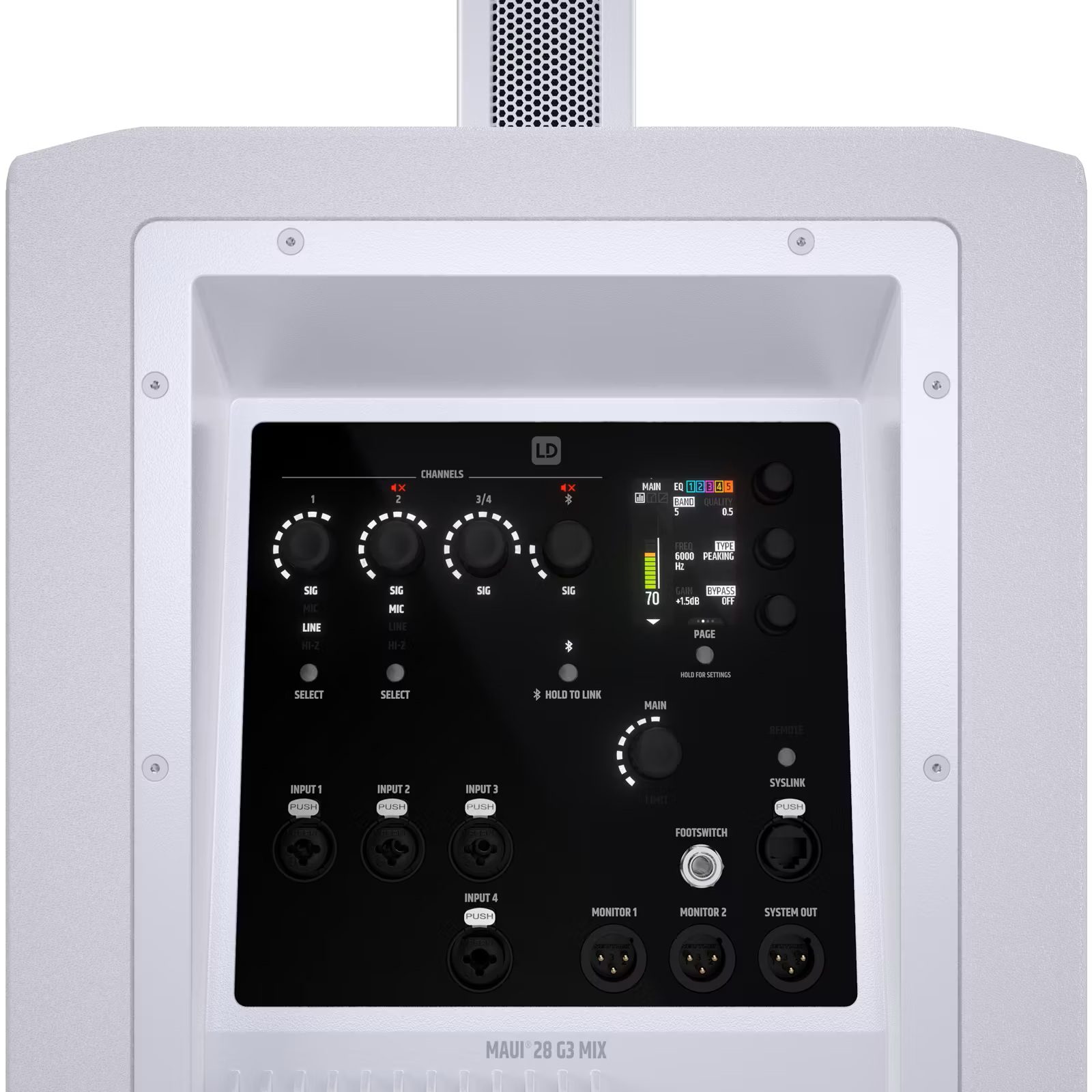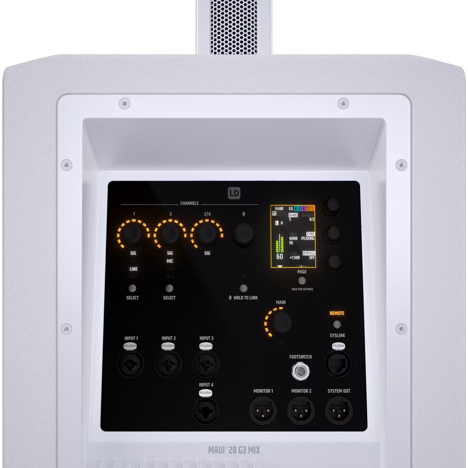 Mezclador de 6 canales, Columna cardioide, App Control (Easy + Expert Mode), Footswitch Input, Efectos y dinámicas integrados, Bluetooth Audio Streaming, SysLink® (conexión en cascada de 2 sistemas)