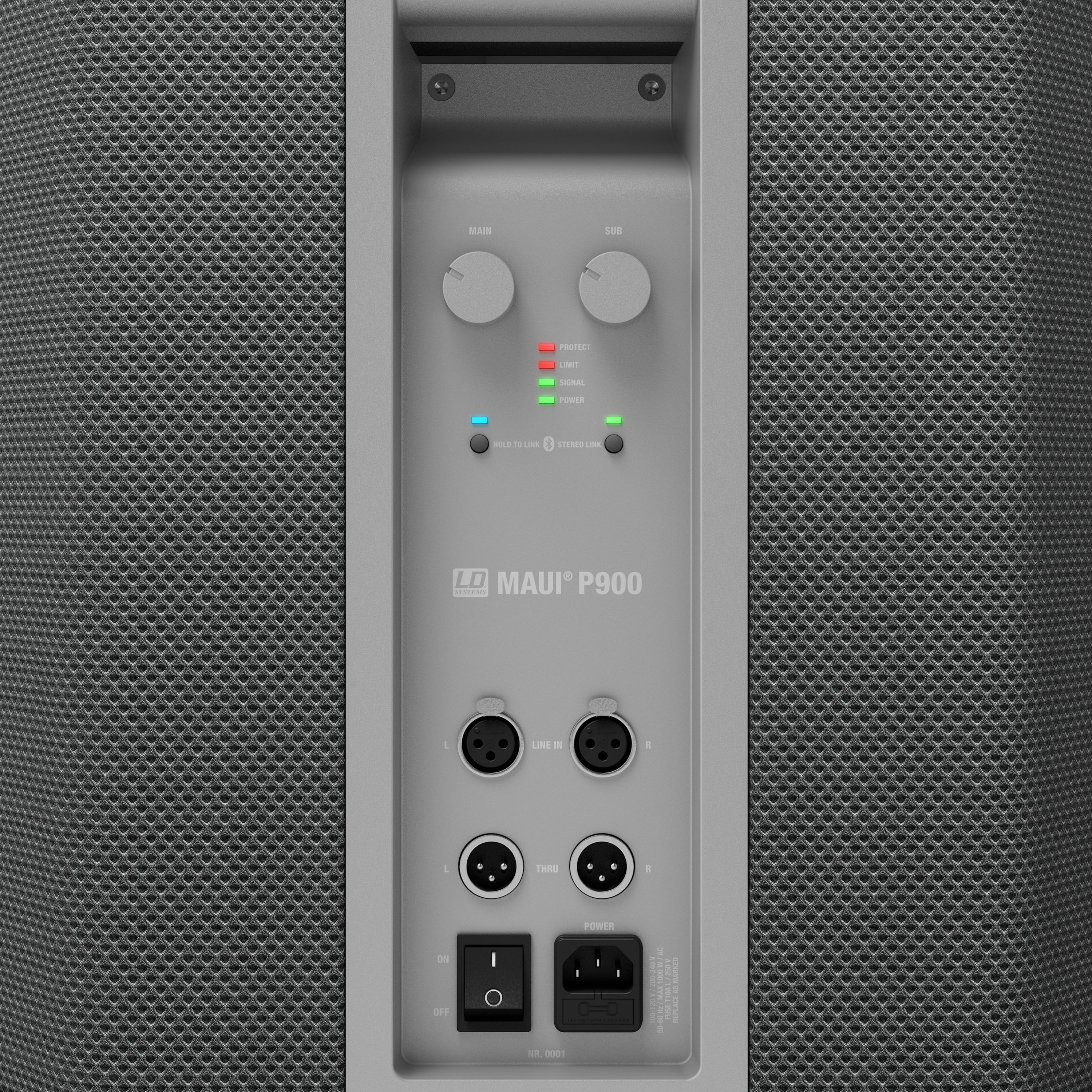 Fabricada en aluminio altamente resistente con una rejilla de malla de varias capas, la estructura exclusiva integrada por tres componentes del MAUI® P900 se monta sin cables y en cuestión de segundos gracias a los conectores multipín patentados. El panel de conexiones minimalista contiene reguladores de volumen del sistema y del subwoofer, entradas de línea estéreo y salidas XLR para operar en estéreo dos sistemas conectados por cables.