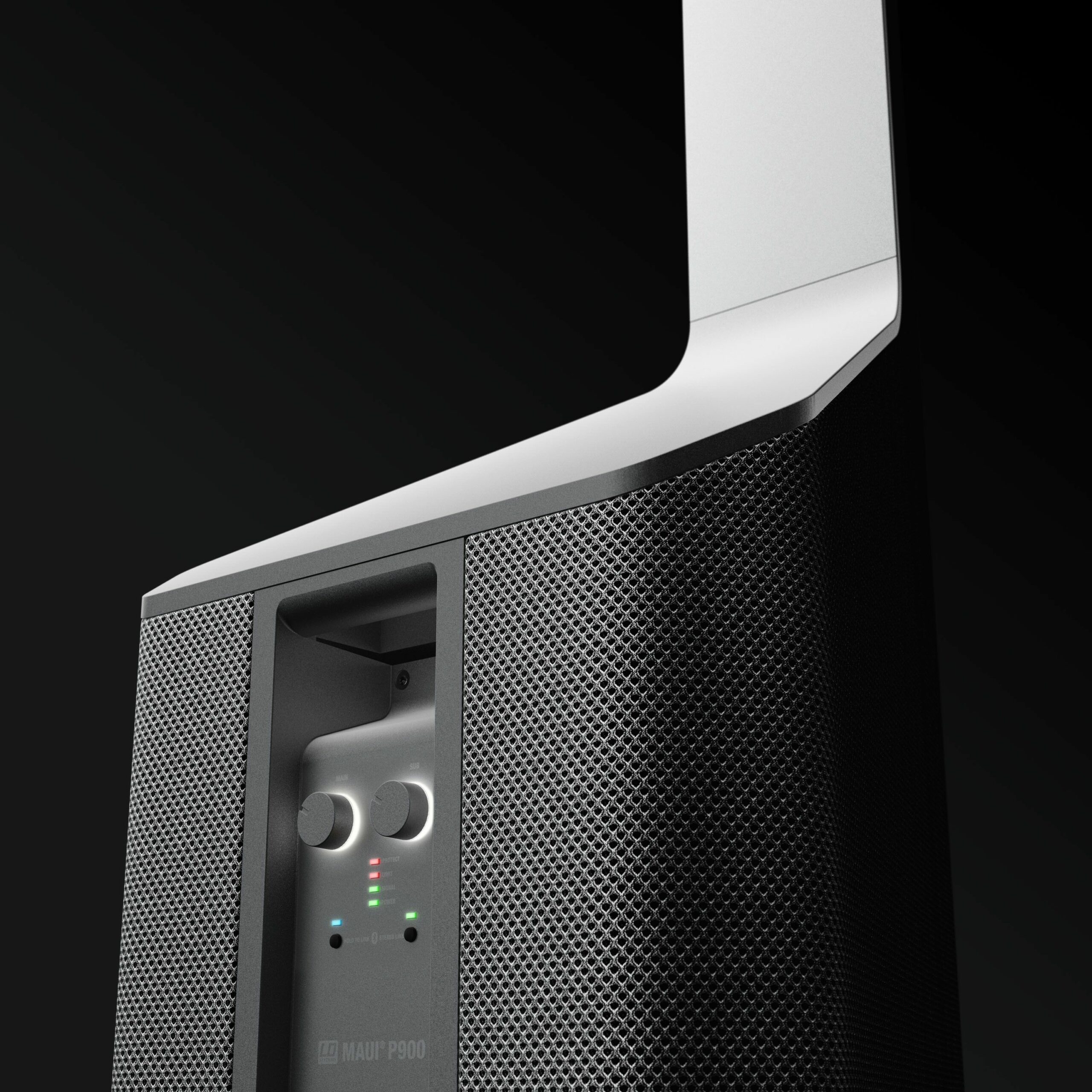 Fabricada en aluminio altamente resistente con una rejilla de malla de varias capas, la estructura exclusiva integrada por tres componentes del MAUI® P900 se monta sin cables y en cuestión de segundos gracias a los conectores multipín patentados. El panel de conexiones minimalista contiene reguladores de volumen del sistema y del subwoofer, entradas de línea estéreo y salidas XLR para operar en estéreo dos sistemas conectados por cables.
